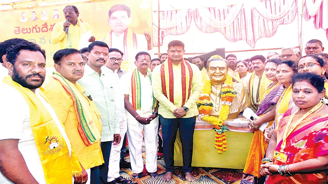 గజపతినగరం మార్చి29(ఆంధ్రజ్యోతి): తెలుగుదేశం పార్టీకి కష్టపడి పనిచేసే కార్యకర్తలే బలమని మంత్రి కొండపల్లి శ్రీనివాస్ అన్నారు. టీడీపీ 44వ ఆవిర్భావ దినం పురస్కరించుకొని ఆదివారం గజపతినగరంలోని ఎన్టీఆర్ విగ్రహానికి ఆయన పూలమాల వేసి నివాళి అర్పించారు. అనంతరం పార్టీ కార్యాలయం వరకు పాదయాత్ర చేపట్టి పార్టీ పతాకాన్ని ఆవిష్కరించారు. అనంతరం నాయకులు, కార్యకర్తలను ఉద్దేశించి మాట్లాడుతూ అన్న ఎన్టీఆర్ తెలుగుప్రజల గుండె చప్పుడని అన్నారు. సమాజమే దేవాలయం-ప్రజలే దేవుళ్లుగా భావించి ప్రతి ఒక్కరికీ కూడు,గూడు,గుడ్డ సాధనకే పార్టీని స్థాపించడమే కాకుండా తొమ్మిది నెలల్లోనే అధికారంలోకి తీసుకొచ్చిన ఘనత ఆయనదేనన్నారు. తెలుగువారి సత్తా ఏంటో అప్పట్లోనే ఆయన ఢిల్లీకి చూపారని గుర్తుచేశారు. పార్టీ 44 వసంతాల ప్రస్థానంలో ఎత్తిన జెండాను దించకుండా టీడీపీకి కాపుకాసిన కార్యకర్తలది కీలక పాత్రగా అభివర్ణించారు. అన్న ఎన్టీఆర్ ఆశయాలకు అనుగుణంగా ముఖ్యమంత్రి చంద్రబాబు అహర్నిశలూ పని చేస్తున్నారన్నారు. పేదరికం లేని సమాజమే లక్ష్యంగా 2047 విజన్ తీసుకొచ్చారని చెప్పారు. అలాగే ఎన్నికల్లో ఇచ్చిన హామీలను శతశాతం నెరవేర్చారని అన్నారు. కార్యక్రమంలో టీడీపీ జిల్లా ఉపాధ్యక్షుడు మక్కువ శ్రీధర్, ఏఎంసీ చైర్మన్ పీవీవీ గోపాలరాజు, పార్టీ సీనియర్ నాయకులు కొండపల్లి కొండలరావు, గజపతినగరం,దత్తిరాజేరు బొండపల్లి,గంట్యాడ,జామి మండల టీడీపీ అధ్యక్షులు గంట్యాడశ్రీదేవి, చప్పా చంద్రశేఖర్, రాపాక అచ్చుంనాయుడు ,కొండపల్లి భాస్కరనాయుడు, స్వామినాయుడు, పీఏసీఎస్ చైర్మన్ లెంక బంగారునాయుడు, ఆండ్ర ప్రాజెక్టు చైర్మన్ కోడి సతీష్ తదితరులు పాల్గొన్నారు.