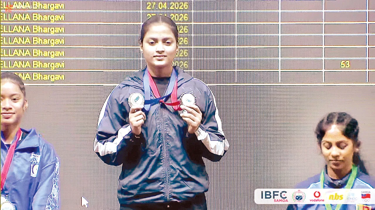 నెల్లిమర్ల, ఏప్రిల్ 27(ఆంధ్రజ్యోతి): యూత్, జూనియర్ కామన్వెల్త్ వెయిట్ లిఫ్టింగ్ చాంపియన్ షిప్ పోటీల్లో కొండవెల గాడ క్రీడాకారిణి బెల్లాన భార్గవి ప్రతిభ కనబరిచారు. సోమవారం నుంచి సమోవా దేశంలో ప్రారంభమైన ఈ పోటీల్లో భార్గవి పాల్గొని.. స్నాచ్ 78 కిలోలు, క్లీన్ జర్క్ 102 కిలోలు మొత్తం 180 కిలోలు బరువెత్తి బంగారు, రజత పతకాలు సాధించారు. ఆమెను కోచ్లు చల్లా రాము, వల్లూరి శ్రీనివాసరావు, రాష్ట్ర, జిల్లా వెయిట్ లిఫ్టింగ్ అసోసియేషన్ ప్రతినిధులు అభినందించారు.