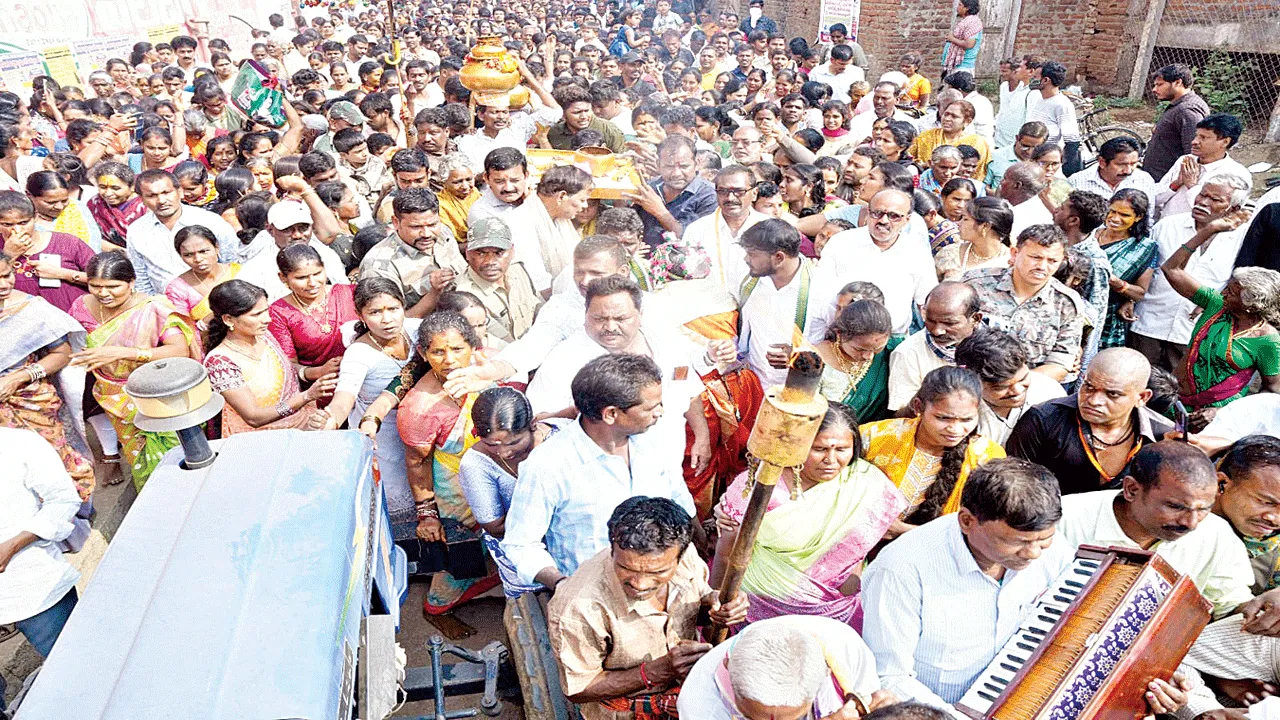 Grand Anupotsavam Celebrated శంబర జాతరలో చివరి ఘట్టం.. పోలమాంబ అనుపోత్సవం బుధవారం వైభవంగా జరిగింది. తొలుత చదురుగుడి నుంచి గ్రామంలోని నడివీధికి అమ్మవారి ఘటాలను తీసుకొచ్చారు. అనంతరం మంగళవాయిద్యాలతో ఉయ్యాల కంబాల ఉత్సవాన్ని నిర్వహించారు.