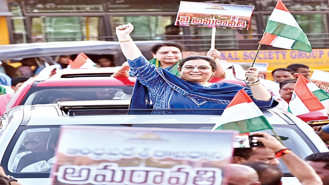 విజయనగరం/ రూరల్/ కలెక్టరేట్, ఏప్రిల్ 2(ఆంధ్రజ్యోతి): పార్లమెంట్లో అమరావతిని శాశ్వత రాజధానిగా ఆమోదిస్తూ చారిత్రాత్మక నిర్ణయం తీసుకోవడంపై జిల్లాలో హర్షాతిరేకాలు వ్యక్తమయ్యాయి. టీడీపీ శ్రేణులు సంబరాలు చేశాయి. నాయకులు, కార్యకర్తలు వాడవాడలా ర్యాలీలు చేపట్టారు. మందుగుండు కాల్చుతూ మద్దతు తెలిపారు. కేక్లు కట్ చేశారు. విజయనగరంలో ఎమ్మెల్యే అదితి గజపతిరాజు క్యాంపు కార్యాలయం నుంచి భారీ బైక్ ర్యాలీ నిర్వహించారు. ఆమె కారులో వెళ్తూ జాతీయ జెండాను పట్టుకుని విజయసంకేతం చూపుతూ అందరినీ ఉత్సాహ పరిచారు. ఈ ర్యాలీ ఎత్తుబ్రిడ్జి, మయూరి కూడలి, ఆర్టీసీ కాంప్లెక్స్ మీదుగా అంబేడ్కర్ జంక్షన్ వరకు సాగింది. అంబేడ్కర్ విగ్రహనికి పూలమాలలు వేసి నివాళులు అర్పించారు. జై అమరావతి అంటూ ర్యాలీ పొడవునా ప్లకార్డులు పట్టుకుని నినాదాలు చేశారు. కార్యక్రమంలో తూర్పు కాపు కార్పొరేషన్ చైర్పర్సన్ పాలవలస యశస్వి, టీడీపీ నాయకులు ఐవీపీ రాజు, ప్రసాదుల ప్రసాద్, గంటా రవి, గంటా పోలినాయుడు తదితరులు పాల్గొన్నారు.