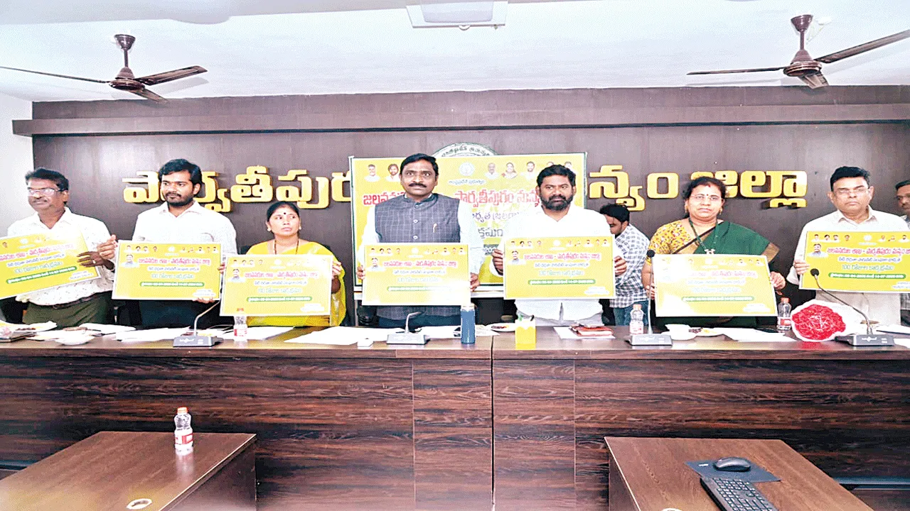 పార్వతీపురం, ఏప్రిల్6(ఆంధ్రజ్యోతి): భవిష్యత్లో నీటి సమస్య రాకూడదన్న ఉద్దేశంతో ప్రభుత్వం తీసుకొచ్చిన జలధార కార్యక్రమాన్ని పక్కాగా చేపట్టాలని కలెక్టర్ ప్రభాకర్రెడ్డి ఆదేశించారు. జల సంరక్షణ పనులను వందరోజుల్లో పూర్తిచేయాలన్నారు. రాష్ట్ర ప్రభుత్వం ప్రతిష్ఠాత్మకంగా చేపడుతున్న సాగునీటి భద్రతా కార్యక్రమాల్లో భాగంగా.. ప్రతిఒక్కరూ నిర్దిష్ట లక్ష్యాల మేరకు పనిచేయాలన్నారు. సోమవారం కలెక్టరేట్లో జలవనరులశాఖ ఆధ్వర్యంలో నిర్వహించిన సమావేశంలో ఆయన మాట్లాడుతూ.. జల సంరక్షణ కార్యక్రమాల్లో సాగునీటి సంఘాలు కీలకపాత్ర పోషించాలన్నారు. చెరువుల్లో నీటి నిల్వలను పెంచి.. వృథాను అరికట్టేందుకు ఉన్న అవకాశాలను గుర్తించాలని ఇంజ నీరింగ్ అధికారులను ఆదేశించారు. పాడైన చెరువులు తూములు, పూడికతో నిండి ఉన్న కాలువలను బాగు చేయాలన్నారు. కిలో వరిని పండించడానికి ఐదు వేల లీటర్ల నీరు ఖర్చు అవుతుందని, ఈ మేరకు అల్టర్నేట్ వెట్ అండ్ డ్రై వంటి ఆధునిక పద్ధతులను అవలంబించాలని సూచించారు. భూగర్భ జలాల పెరుగుదలతో పాటు వంద శాతం నీటి నిల్వ ఉన్న జిల్లాగా పార్వతీపురం మన్యం రాష్ట్రస్థాయిలో గుర్తింపు పొందిందన్నారు. జిల్లాలో చెరువుల చుట్టూ ఆక్రమణలను జగరకుండా ఉపాధి హామీ పథకం కింద ఫెన్సింగ్ వేసి మొక్కలు నాటుతామని వెల్లడించారు. ప్రభుత్వ విప్ తోయక జగదీశ్వరి, పార్వతీపురం ఎమ్మెల్యే విజయచంద్ర మాట్లాడుతూ ..ఉత్తరాంధ్ర సంస్కృతిలో భాగమైన గొలుసు కట్టు చెరువుల వ్యవస్థను మళ్లీ బలోపేతం చేయాల్సిన అవసరం ఉందన్నారు. ఈ సమావేశంలో జేసీ యశ్వంత్కుమార్రెడ్డి, టీడీపీ అరకు పార్లమెంట్ అధ్యక్షురాలు తేజోవతి, ఎగ్జిక్యూటివ్ ఇంజనీర్ ప్రదీప్, నీటి సంఘాల ప్రతినిధులు పాల్గొన్నారు.