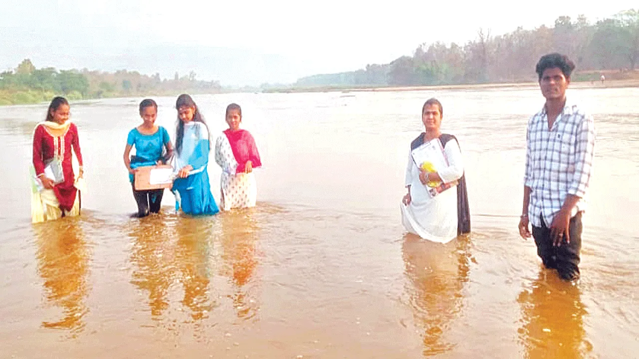 కురుపాం, ఫిబ్రవరి23(ఆంధ్రజ్యోతి): కొమరాడ మండలంలో నాగావళి తీరాన ఉన్న పలు గ్రామాల విద్యార్థులకు నది దాటడమే పెద్ద పరీక్షగా మారింది. కొట్టు, తొడుము గ్రామాలకు చెందిన విద్యార్థులు సోమవారం ఇంటర్ పరీక్షలు రాయడం కోసం నానా అవస్థలు పడ్డారు. ప్రాణాలను అరచేతిలో పెట్టుకుని.. నది దాటుకుని కొమరాడలో ఉన్న ప్రభుత్వ జూనియర్ కళాశాలకు చేరుకున్నారు. కాగా నది ఆవల నుంచి కొమరాడ వచ్చేసరికి సుమారు గంటన్నర సమయం పడుతుందని విద్యార్థులు వాపోతున్నారు. నదిలో ప్రస్తుతం మోకాళ్ల లోతులో నీరు ఉండడంతో రాకపోకలు సాగించడం కష్టంగా ఉందని, దుస్తులు కూడా తడిసిపోవడంతో పరీక్ష కేంద్రాలకు ఎలా వెళ్లాలో తెలియడం లేదని ఆవేదన చెందుతున్నారు. చుట్టూ తిరిగి మండల కేంద్రానికి చేరుకోవాలంటే వ్యయప్రయాసలకు గురువుతున్న నేపథ్యంలో ప్రభుత్వం, ఉన్నతాధికారులు స్పందించి నాగావళిపై వంతెన నిర్మాణానికి చర్యలు తీసుకోవాలని ఆ ప్రాంతవాసులు కోరుతున్నారు.