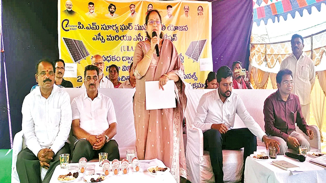 డెంకాడ, ఏప్రిల్ 7(ఆంధ్రజ్యోతి): యువతకు ఉపాధి కల్పనే ప్రధాన లక్ష్యంగా కూటమి ప్రభుత్వం పనిచే స్తోందని ఎమ్మెల్యే లోకం నాగమాధవి అన్నారు. మంగ ళవారం డెంకాడలోని ఎస్సీ కాలనీలో ఏపీఈపీడీసీఎల్ పర్యవేక్షక అధికారుల ఆధ్వర్యంలో పీఎం సూర్యఘర్ పథకాన్ని ప్రారంభించారు. ఎమ్మెల్యే లోకం నాగమాధ వి, విద్యుత్ శాఖ సీఎండీ పృథ్వితేజ్ పాల్గొని, మాట్లా డారు. అనంతరం గృహాలపై ఏర్పాటుచేసిన సోలార్ రూఫ్టాప్ సిస్టమ్స్ను ప్రారంభించారు. ఎంపీపీ వాసు దేవరావు, మాజీ ఎంపీపీ కంది చంద్రశేఖరరావు, ఏపీ ఈపీడీసీఎస్ పర్యవేక్షక ఇంజనీర్ లక్ష్మణరావు, ఈఈ మాదవ నాయుడు, ఏఈ అప్పలస్వామినాయుడు, జనసేన నాయకుడు తుమ్మి లక్ష్మీరాజ్ పాల్గొన్నారు.