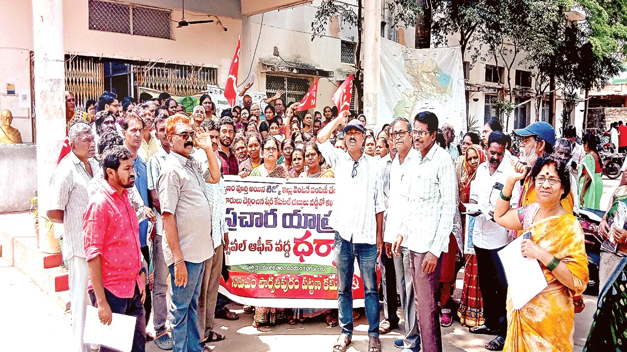 టిడ్కో గృహలను లబ్ధిదారులకు అందజేయాలని సీపీఎం డిమాండ్చేసింది. ఈ మేరకు మంగళవారం మునిసిపల్ కార్యాలయాన్ని సీపీఎం ఆధ్వర్యంలో ముట్టడించారు. ఈ సందర్భంగా పార్టీ జిల్లా కార్యదర్శి కొల్లి గంగునాయుడు మాట్లాడుతూ 768 ఇళ్లకు గాను 90 శాతం నిర్మాణం పూర్తయినా ఏదో ఒక షాకుతో లబ్ధిదారులకు అప్పగించడం లేదని ఆరోపించారు.
