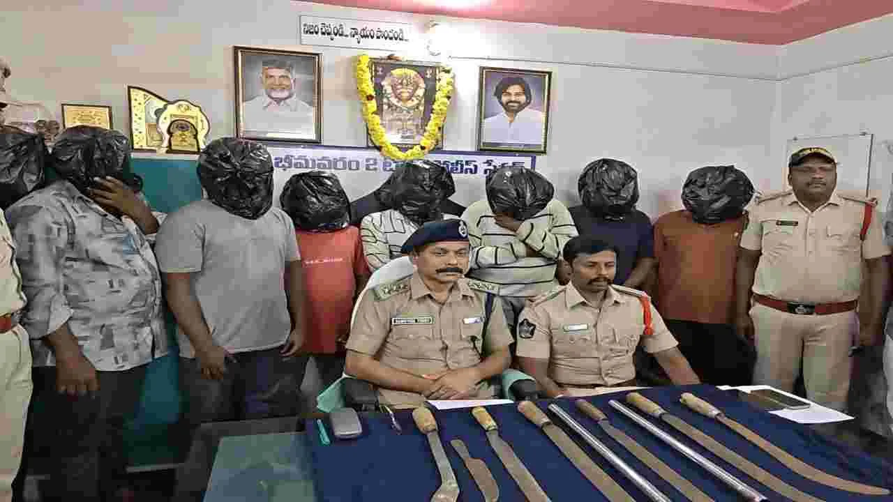 భీమవరం క్రైం, మార్చి 3(ఆంధ్రజ్యోతి): ఆధిపత్య పోరు.. ఆర్థిక లావాదేవీల విషయంలో రౌడీ ముఠాలు చెలరేగిపోతున్నాయి. గతంలో జరిగిన కొన్ని ఘటనల నేపథ్యంలో కక్షలు పెరుగుతూ వస్తున్నాయి. గత నెల 27న రౌడీ షీటర్ రౌతుల రఘుబాబు వర్గంపై జరిగిన హత్యాయత్నం కేసులో ఇద్దరు రౌడీ షీటర్లతో పాటు మరో ఆరుగురిని టూటౌన్ పోలీసులు అరెస్ట్ చేశారు. భీమవరం టూటౌన్ పోలీస్ స్టేషన్లో భీమవరం డీఎస్పీ రఘువీర్ విష్ణు ఏర్పాటు చేసిన విలేకరుల సమావేశంలో వివరాలు వెల్లడించారు. రౌతుల రఘుబాబు అనే వ్యక్తి భీమవరం టూ టౌన్ పోలీస్ స్టేషన్ పరిధిలో రౌడీ షీట్ ఉంది. అతనిపై పలు క్రిమినల్ కేసులు కూడా ఉన్నాయి. పాత కక్షల నేపథ్యంలో రౌతుల రఘుబాబు జైల్లో ఉండగా వడ్డీ వెంకట దుర్గారావు, బెవర గోవిందరావు, బెవర విజయబాబు అనే వ్యక్తులు రఘుబాబు సోదరుడైన మరో రౌడీ షీటర్ రౌతుల ఏసును హత్య చేశారు. దీంతో కక్ష పెంచుకున్న రఘు ప్రతీకారంగా 2023 సెప్టెంబర్లో అనుచరులతో కలిసి బెవర గోవిందు, బెవర విజయబాబుపై దాడి చేశారు. ఈ దాడిలో గోవిందబాబు తప్పించుకోగా, విజయబాబును హత్య చేశారు. దీంతో బెవర గోవిందు రఘుపై కక్ష పెంచుకున్నాడు. గోవిందరావు, వడ్డీ వెంకట దుర్గారావు మరో ఆరుగురు కలిసి రఘును మట్టుబెట్టేందుకు పన్నాగం పన్నారు. ఈ నేపథ్యంలో ఉంగుటూరు నియోజకవర్గంలోని కైకరం ప్రాంతంలో ఒక గదిని అద్దెకు తీసుకుని రెండు నెలలపాటు పథకాన్ని రూపొందించారు. గత నెల 27న రౌతుల రఘు డిఎన్నార్ కళాశాల రోడ్డులో ఉన్న కోర్టుకు వాయిదాకు వస్తున్నాడన్న విషయం తెలుసుకుని అక్కడే కాపు కాశారు. వచ్చి వెంటనే కత్తులతో దాడి చేసి చంపడానికి ప్రయత్నించారు. దీంతో రఘు పారిపోయి అపార్ట్మెంట్లో దాక్కుని తప్పించుకున్నాడు. టూటౌన్ సీఐ కాళీచరణ్, సిబ్బంది ఘటనా స్థలానికి చేరుకుని రౌతుల రఘుబాబును సంరక్షించారు. ఘటనా స్థలంలో ఉన్న కారు, ఏడు కత్తులు, రెండు స్టీల్ రాడ్లు, రెండు సెల్ఫోన్లు స్వాధీనం చేసుకుని రఘు ఇచ్చిన ఫిర్యాదు మేరకు కేసు నమోదు చేశారు. సీసీ కెమెరాల ఆధారంగా బలుసుమూడికి చెందిన రౌడీషీటర్లు బెవర గోవిందరావు, గొల్లవానితిప్ప రోడ్డుకు చెందిన వడ్డీ వెంకట దుర్గారావు ఇంకా కఠారి జంఝా (ధనుష్), నయనపు సాయిశ్రీరామ్(నల్లం నాని), బీసీ కాలనీకి చెందిన మామిడి దుర్గారావు (గుండు), భీమవరం మండలం తుప్పగొప్ప గ్రామానికి చెందిన ఈదా మోషే(బన్ని), సగర్లపేటకు చెందిన నక్కా డేవిడ్రాజు, ఉంగుటూరు మండలం కైకరం గ్రామానికి చెందిన బలే దేవదాసు అనే ఎనిమిది మందిని గొల్లవానితిప్ప రోడ్డులో సంజనా డెవలపర్ ్స వద్ద ఉన్న షెడ్డు వద్ద ఉండగా సోమవారం అర్ధరాత్రి అరెస్ట్ చేశారు. నిందితులపై అనేక కేసులు ఉన్నాయని చెప్పారు. ఈ కేసులో చాకచక్యంగా వ్యవహరించిన సీఐ కాళీచరణ్ను, ఎస్ఐలు రెహ్మాన్, రామారావు, మల్లిక