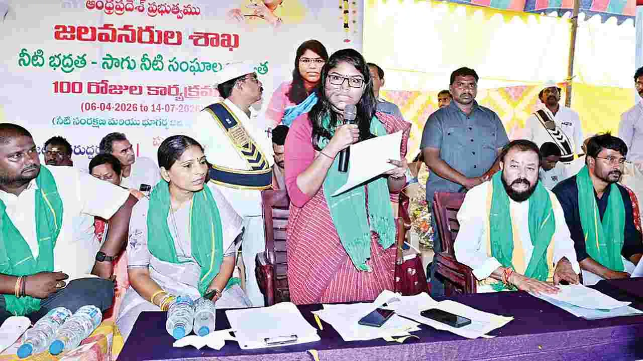దెందులూరు, ఏప్రిల్ 6(ఆంధ్రజ్యోతి):జిల్లాలో కాలువలు, చెరువులు, ఫీడర్ చానల్స్లో పూడికతీత, పునర్నిర్మాణం, ఆక్రమణల తొలగింపు తదితర పనులపై ఇంజనీరింగ్ అధికారులు ఈనెల 15లోగా ప్రతిపాదనలను రూపొందించాలని కలెక్టర్ వెట్రిసెల్వి ఆదేశించారు. పది రోజుల్లో పాలనాపరమైన ఆమోదం, 70 రోజుల్లోగా పనులు పూర్తి, జూలై 14లోగా బిల్లులు సమర్పించేలా 100 రోజుల ప్రణాళిక రూపొందించామన్నారు. జలవనరుల శాఖ వంద రోజుల నీటి సంరక్షణ ప్రణాళికలో భాగంగా ‘నీటి భద్రత–సాగునీటి సంఘాల బాధ్యత’ కార్యక్రమాన్ని సోమవరప్పాడులో కొత్త చెరువు వద్ద సోమవారం నిర్వహించారు.ఎమ్మెల్యే చింతమనేని ప్రభాకర్ మాట్లాడుతూ మాట్లాడుతూ గ్రామాల్లో చెరువుల సంరక్షణ, భూగర్భ జలాలు పెంపులో సాగునీటి సంఘాలది కీలక పాత్ర అన్నారు. సోమవరప్పాడులో ఉపాధి నిధులతో చేపట్టిన రహదారి పనులను వారు పరిశీలించారు. తహసీల్దార్ సుమతి, ఎంపీడీవో వీరప్రతాప్, గోదావరి కాల్వ డీసీ చైర్మన్ వెలమాటి రాంబాబు, మార్కెట్ కమిటీ చైర్మన్ రామసీత, ఇరిగేషన్ ఎస్ఈ దేవప్రకాష్, ఆర్డీవో కిశోర్, వ్యవసాయశాఖ జేడీ హబీబ్ బాషా తదితరులు పాల్గొన్నారు. కాగా జిల్లాలో నీటి సంరక్షణ పనులపై సాగు నీటి సంఘాల ప్రతినిధులతో కలిసి ఖరారు చేసి, గ్రామాల వారీగా కలిసి పరిశీలించి నివేదికలను త్వరితగతిన ఎంపీడీవోలు సమర్పించాలని కలెక్టర్ వెట్రిసెల్వి అధికారులను ఆదేశించారు. నీటి భద్రత–సాగునీటి సంఘాల బాధ్యత కార్యక్రమం కింద చేపట్టాల్సిన పనులపై అధికారులతో సోమవారం ఆమె వీడియో కాన్ఫరెన్స్ ద్వారా సమీక్షించారు.