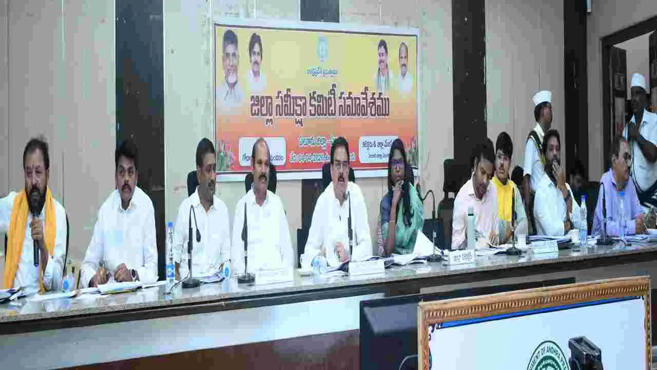 సమీక్షలో ఆప్కాబ్ చైర్మన్ గన్ని వీరాంజనేయులు, డీసీఎంస్ చైర్మన్ చాగంటి మురళీకృష్ణ, విజయవాడ ఆర్టీసీ జోనల్ చైర్మన్ రెడ్డి అప్పలనాయడు, గ్రంథాలయ సంస్థ చైర్మన్ నాగరాజు, జేసీ అభిషేక్ గౌడ, డీఎఫ్వో సందీప్రెడ్డి, సీపీవో శ్రీదేవి, ఎస్ఈలు విజయరత్నం, రమేష్బాబు, సాల్మన్రాజు, ఇన్చార్జి డీటీసీ కృష్ణారావు, డీఎస్వో విలియమ్స్, వ్యవసాయశాఖ జేడీ హబీబ్ బాషా, డీపీటీవో షేక్ షబ్నం, సెట్వెల్ సీఈవో కోట సూర్యప్రభాకర్రావు పాల్గొన్నారు.