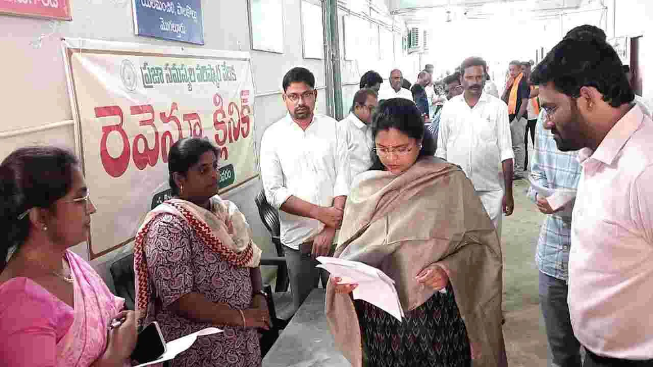 రెవెన్యూ క్లినిక్లో భూసమస్యలపై వచ్చిన 54 దరఖాస్తుల పరిష్కారానికి సంబంధిత అధికారులు చర్యలు తీసుకోవాలని ఆదేశించారు. జేసీ రాహుల్ కుమార్రెడ్డి, డీఆర్వో శివన్నారాయణరెడ్డి, జిల్లా స్వర్ణ గ్రామం, స్వర్ణ వార్డు అధికారి వై.దోసిరెడ్డి, డ్వామా పీడీ అప్పారావు, కలెక్టరేట్ పరిపాలన అధికారి ఎన్.వెంకటేశ్వరరావు ఫిర్యాదులు స్వీకరించారు.