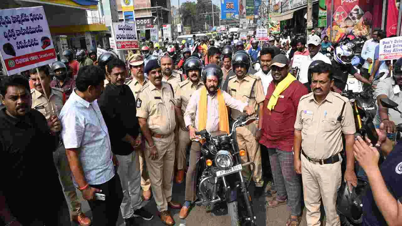 హెల్మెట్, సీట్ బెల్ట్ ధరించడం కారణంగా రహదారి ప్రమాదాల నుంచి ప్రాణ రక్షణ పొందవచ్చని కలెక్టర్ కె.వెట్రిసెల్వి అన్నారు. జాతీయ రహదారి భద్రతా మాసోత్స వాల్లో భాగంగా ఏలూరు శాంతినగర్ నుంచి పాత బస్టాండ్ వరకు గురువారం నిర్వహించిన బైక్ర్యాలీని కలెక్టర్ ప్రారంభించారు. ఆమె మాట్లాడుతూ రహదారి నిబంధనలపై అవగా హన కలిగి ఉండాలన్నారు. ఏలూరు ఫైర్స్టేషన్ సెంటర్ వద్ద ఎమ్మెల్యే చింతమనేని ప్రభాకర్ ఈ ర్యాలీలో పాల్గొన్నారు. రవాణా శాఖ ఉప కమిషనర్ కృష్ణారావు, ఆర్టీవో శేఖర్, ఏలూరు డీఎస్పీ శ్రావణ్కుమార్, ఏలూరు సాయి స్వర్ణ హీరో మోటార్స్ జనరల్ మేనేజర్ సోమేశ్వర రావు, నగరంలోని వివిధ మోటార్ వాహనాల డీలర్లు, జిల్లాలోని వివిధ శాఖల అధి కారులు పాల్గొన్నారు.
