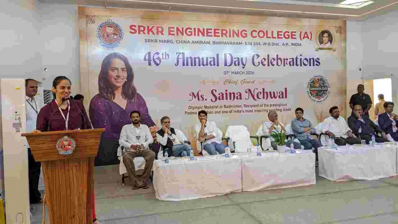 యువత వినోదాలను వదిలి శరీర దృఢత్వాన్ని పెంచుకోవాలని బ్యాడ్మింటన్ క్రీడాకారిణి పద్మభూషణ్ సైనా సెహ్వాల్ అన్నారు. శనివారం జరిగిన ఎస్ఆర్కేఆర్ ఇంజనీరింగ్ కళాశాల 46వ వార్షికోత్సవంలో ఆమె ముఖ్యఅతిథిగా మాట్లాడుతూ చదువుతోపాటు క్రీడలకు ప్రాధాన్యత ఇవ్వాలన్నారు.