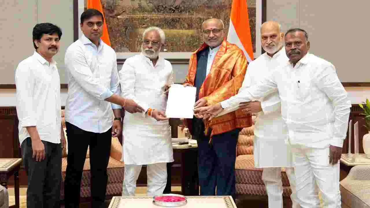 న్యూఢిల్లీ, ఏప్రిల్ 3(ఆంధ్రజ్యోతి): రాజ్యసభలో అమరావతి బిల్లుపై చర్చ సందర్భంగా వైసీపీకి తగిన సమయం కేటాయించలేదని రాజ్యసభ చైర్మన్ రాధాకృష్ణన్కు ఆపార్టీ ఎంపీల బృందం ఫిర్యాదు చేసింది. శుక్రవారం రాధాకృష్ణన్ను ఆయన నివాసంలో కలిసి వైవీ సుబ్బారెడ్డి వినతిపత్రం అందజేశారు. అనంతరం మీడియాతో మాట్లాడారు. ‘సభలో మా బలానికి తగిన ప్రాధాన్యమివ్వకుండా పార్లమెంటరీ సంప్రదాయాలకు విరుద్ధంగా వ్యవహరించారు. దీనిపై విచారణ జరపాలి’ అన్నారు.