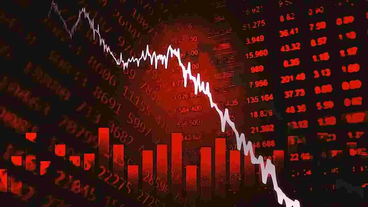ముంబై: భారత స్టాక్ మార్కెట్ ప్రామాణిక సూచీలు మళ్లీ నష్టపోయాయి. సెన్సెక్స్ 77,000, నిఫ్టీ 24,000 స్థాయిలను చేజార్చుకున్నాయి. ముడిచమురు ధరలు 110 డాలర్ల పైకి ఎగబాకడం, విదేశీ సంస్థాగత పెట్టుబడుల నిరవధిక ఉపసంహరణ, అమెరికా- ఇరాన్ మధ్య శాంతి చర్చల్లో అనిశ్చితి మదుపరుల సెంటిమెంట్ను కుంగదీశాయి. ఈ నేపథ్యంలో బ్యాంకింగ్, ఆర్థిక సేవలు, వాహన రంగ షేర్లలో అమ్మకాలు పెంచడంతో సూచీలు నేలచూపులు చూడాల్సి వచ్చింది. మంగళవారం ట్రేడింగ్లో సెన్సెక్స్ ఒక దశలో 562.57 పాయింట్లు పతనమై 76,741.91 వద్ద ఇంట్రాడే కనిష్ఠాన్ని నమోదు చేసింది. చివరికి సూచీ 416.72 పాయింట్ల నష్టం తో 76,886.91 వద్ద స్థిరపడింది. నిఫ్టీ 97 పాయింట్లు కోల్పోయి 23,995.70 వద్ద ముగిసింది. దాంతో ఈక్విటీ వర్గాల సంపదగా భావించే బీఎ్సఈ నమోదిత కంపెనీల మొత్తం మార్కెట్ విలువ రూ.98,000 కోట్లు తగ్గి రూ.466.93 లక్షల కోట్లకు (4.94 లక్షల కోట్ల డాలర్లు) జారుకుంది.