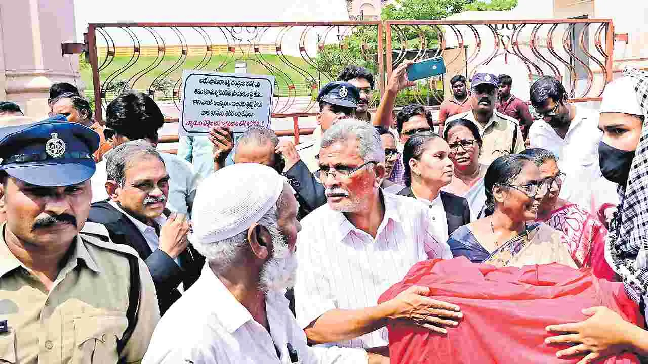 విజయవాడ/తెనాలి, ఫిబ్రవరి 27(ఆంధ్రజ్యోతి): ‘బిడ్డా... మమ్మల్ని క్షమించు. 19 ఏళ్లయినా నీకు న్యాయం చేయలేకపోయాం. పోలీసు, సీబీఐ, న్యాయవ్యవస్థల్లో ఏ ఒక్కటి నీకు న్యాయం చేయలేదు’.. అంటూ ఆయేషా మీరా తల్లిదండ్రులు కోర్టులో కన్నీళ్లు మున్నీ రయ్యారు. బీఫార్మసీ విద్యార్థిని ఆయేషా హత్యాచారం కేసును విజయవాడలోని సీబీఐ కోర్టు ఇటీవల కొట్టివేసిన విషయం తెలిసిందే. రీపోస్టుమార్టం కోసం సీబీఐ సేకరించిన బాధితురాలి అవశేషాలను తీసుకొనేందుకు ఆయే షా తల్లిదండ్రులు ఇక్బాల్, సంషాద్ బేగం, ముస్లిం మత పెద్దలు శుక్రవారం తెనాలి నుంచి విజయవాడ వచ్చారు. బెజవాడ బార్ అసోసియేషన్ కార్యాలయం నుంచి న్యాయవాదులు, మహిళా సంఘాలతో కలిసి ఆయేషాకు న్యాయం చేయాలని ప్లకార్డులు ప్రదర్శిస్తూ.. సీబీఐ కోర్టు వరకు ర్యాలీ చేశారు. ఆయేషా తల్లిదండ్రులు తమ ఆవేదనను న్యాయాధికారి అన్నపూర్ణకు విన్నవించుకున్నారు. ‘‘ఈ కేసులో బాధితులను నిందితులు చేశారు. నిందితులను సాక్షులు చేశారు. మా పోరాటం ఒక అరణ్య రోదనగా మిగిలింది. మాకు న్యాయం కావాలి’’ అని విలపించారు. సంతకాలు చేసే క్రమంలో ‘‘బిడ్డా... మమ్మల్ని క్షమించు. నీకు న్యాయం చేయలేకపోయాం’’ అంటూ బోరున విలపించారు. అనంతరం కోర్టు నుంచి ఎంజీ రోడ్డులోని అంబేడ్కర్ విగ్రహం వరకు ర్యాలీ నిర్వహించారు. అక్కడి నుంచి అవశేషాలను సీల్డ్ బాక్స్లో గుంటూరు జిల్లా తెనాలికి అంబులెన్స్ ద్వారా తీసుకెళ్లారు. ఆయేషా శరీర భాగాలను తెనాలి చెంచుపేట ముస్లిం శ్మశానవాటికలో తిరిగి ఖననం చేశారు. ముస్లిం యువకులు, కూటమి నాయకులు ర్యాలీగా వచ్చి వారి కుటుంబానికి సంఘీభావం తెలియజేశారు.