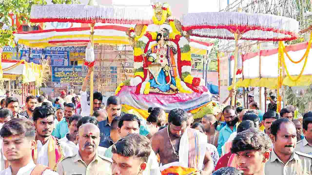ఒంటిమిట్ట, ఏప్రిల్ 3 (ఆంధ్రజ్యోతి): ఒంటిమిట్ట కోదండరామస్వామి వార్షిక బ్రహ్మోత్సవాల్లో భాగంగా 8వ రోజు శుక్రవారం ఉదయం స్వామివారు కాళీయమర్ధన అలంకారంలో భక్తలకు దర్శనమిచ్చారు. ఉదయం 7.30 గంటల నుంచి ప్రారంభమైన గ్రామోత్సవం 9.30 గంటల వరకు జరిగింది. రాత్రి కోదండరాముడు అశ్వవాహనంపై విహరించారు. ఈ కార్యక్రమంలో ఆలయ డిప్యూటీ ఈవో ప్రశాంతి, ఆలయ పర్యవేక్షణ అధికారి హనుమంతయ్య, తనిఖీ అధికారి నవీన్కుమార్, అర్చకులు మనోజ్కుమార్, పవన్కుమార్ పాల్గొన్నారు.