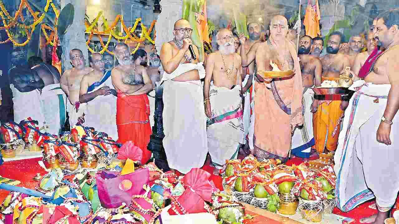 ఇంద్రకీలాద్రిపై మూడు రోజులు నిర్వహించే మహాకుంభాభిషేక క్రతువు శుక్రవారం ఆరంభమైంది. వేదపండితులు, ఆలయ అధికారులు...
