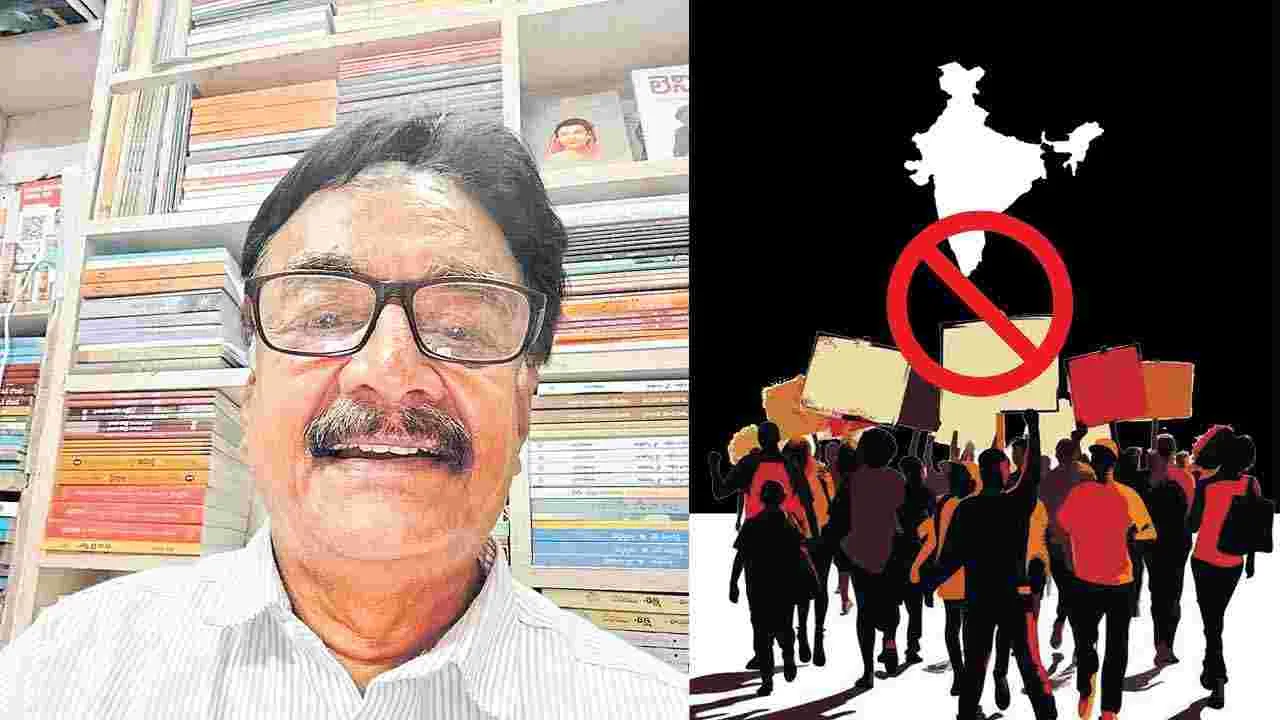 ప్రజాస్వామిక వ్యవస్థలో సమ్మెలు, ఆందోళనల్ని నియంత్రించే బాధ్యత ప్రభుత్వానికి ఉంటుంది గానీ, వాటిని నిర్మూలించే అధికారం ఉండదు. నియంత్రణకూ, నిర్మూలనకూ మధ్య ప్రజాస్వామిక అవగాహనలో చాలా వ్యత్యాసం ఉంది. అవి రెండూ పరస్పర వ్యతిరేక అంశాలు. కార్మికులకు సమ్మె చేసే హక్కు, ప్రజలకు నిరసన వ్యక్తం చేసే హక్కు ప్రజాస్వామ్యానికి ప్రాణం. వాటిని తొలగిస్తే ఆ ప్రజాస్వామ్యాన్ని నడిరోడ్డు మీద హత్య చేసినట్టే. వ్యక్తులకు ఉండే భావప్రకటన స్వేచ్ఛ సమూహ స్థాయిలో నిరసన స్వేచ్ఛగా మారుతుంది. అది రాజ్యాంగం ఇచ్చిన హక్కు అనడం కూడా సరికాదు; ఆ పునాదుల మీదనే రాజ్యాంగం అవతరించింది. ప్రజాస్వామ్యంలో ఎన్నికలంటేనే నిరసన హక్కు. ఆ విలువలను పరిరక్షించడానికే ఐదేళ్లకోసారి ఎన్నికలు నిర్వహించాలనే నియమం రూపొందింది. అధికారంలో ఉన్న ప్రభుత్వ పనితీరుకు ఆమోదం తెలిపే అవకాశంతోపాటు, నిరసనతో గద్దెదించే అవకాశాన్ని కూడా ఎన్నికలు ప్రజలకు ఇస్తాయి. వీటిల్లో మొదటిదానికన్నా రెండోదే కీలకం. సమ్మెలు, నిరసనలు, ఉద్యమాల ద్వారా ప్రజలు తమ కోర్కెలను పాలకుల దృష్టి తెస్తారు. తద్వారా విధానాలను సరిదిద్దుకునే, కొత్త వాగ్దానాలను రూపొందించుకునే అవకాశం అధికార పార్టీకే కాక, ఇతర రాజకీయ పార్టీలకు కూడా కలుగుతుంది. ఇప్పుడు ఈ మొత్తం ప్రక్రియను నిరోధించే పనిలో కేంద్ర ప్రభుత్వం నిమగ్నమైంది. సంఘ పరివార్కూ, దాని రాజకీయ వేదిక అయిన భారతీయ జనతా పార్టీకీ– రాజకీయాల్లో గాంధీజీ, ప్రభుత్వ నిర్వహణలో రాజ్యాంగం అంటే అస్సలు పడదు. ఆ విషయాన్ని వాళ్ళేమీ దాచుకోరు. మొదటి నుంచీ బాహాటంగానే చెపుతూ వస్తున్నారు.