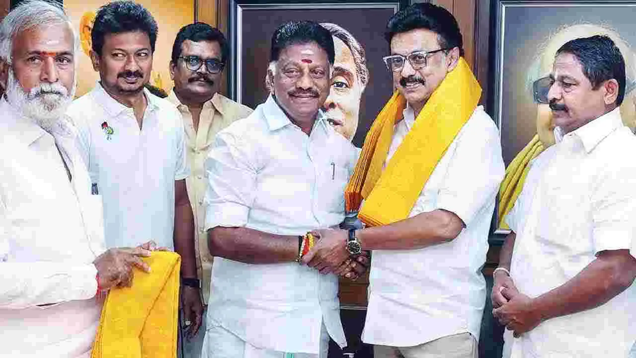 తమిళనాడు మాజీ ముఖ్యమంత్రి జయలలితకు అత్యంత సన్నిహితుడైన పన్నీరుసెల్వం కరుణానిధి పార్టీలో చేరి, ముఖ్యమంత్రి స్టాలిన్ చేతులమీదుగా పుష్పగుచ్ఛం అందుకుంటున్న ఆ దృశ్యం...