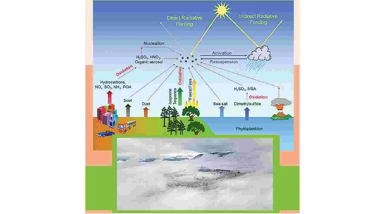భూమిపై పడే సూర్యరశ్మి సమయం తగ్గిపోవటానికి ప్రధాన కారణం గాలిలో ‘ఏరోసోల్స్’ కణాల సాంద్రత పెరగటం. ఏరోసోల్స్ అంటే గాలిలో తేలియాడుతూ ఉండే ఘన పదార్థాలు లేదా ద్రవ బిందువులు. ఇవి కంటికి కనిపించవు, లేదా చాలా తక్కువగా కనిపిస్తాయి. ఉదాహరణకు పొగ, మంచు. ఈ ఏరోసోల్స్ పరిశ్రమల ఉద్గారాలు, వాహన ఉద్గారాలు, పంట వ్యర్థాలు, బొగ్గు కాల్చటం ద్వారా గాలిలోకి విడుదల అవుతాయి. వాతావరణంలోని నీటి ఆవిరి ‘ఏరోసోల్స్’ చుట్టూ వచ్చి చేరటం వల్ల, చిన్న చిన్న ద్రవ బిందువులుగా మారి మేఘాలు ఏర్పడతాయి. సహజంగా మేఘాలలోని చిన్న చిన్న ద్రవ నీటి బిందువులు ఒకదానితో మరొకటి కలసిపోయి పెద్ద పెద్ద నీటిబిందువులుగా మారి వాటి బరువు పెరిగి మేఘాలు వర్షిస్తాయి. కానీ ఏరోసోల్స్ ఎక్కువైతే నీటిబిందువుల సంఖ్య పెరుగుతుంది కానీ ప్రతి నీటిబిందువు చాలా చిన్నగా ఏర్పడుతుంది. ఇవి సులభంగా ఒకదానితో ఒకటి కలిసిపోకపోవడం వల్ల వర్షం ఏర్పడడం ఆలస్యం అవుతుంది. దీని వల్ల మేఘాలు ఎక్కువసేపు ఉండిపోయి, సూర్యకాంతి భూమిపై పడకుండా అడ్డుకుంటాయి.