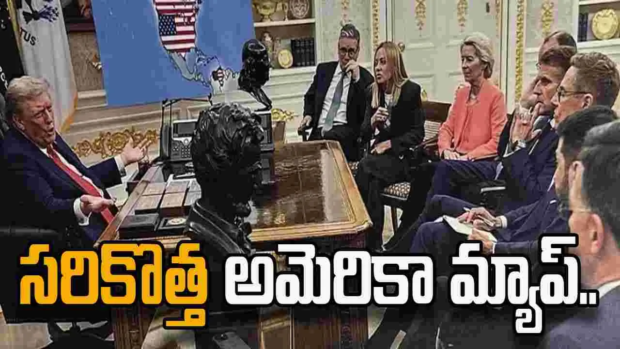 కెనడా, గ్రీన్ల్యాండ్, వెనెజువెలాలను కలిగి ఉన్న అమెరికా మ్యాప్ను ట్రంప్ తాజాగా పోస్ట్ చేశారు. ఆ మ్యాప్ను ఏఐ ద్వారా రూపొందించారు. ఓవల్ ఆఫీసులో నాటో నాయకులతో ట్రంప్ సమావేశంలో ఉన్నట్టు ఆ ఫొటోలో కనిపిస్తోంది. ఆ ఫొటోలో ఫ్రెంచ్ అధ్యక్షుడు ఇమ్మాన్యుయేల్ మాక్రాన్, ఇటలీ ప్రధాని జార్జియా మెలోని, యూకే ప్రధాని కీర్ స్టార్మర్, యూరోపియన్ కమిషన్ అధ్యక్షురాలు ఉర్సులా వాన్ డెర్ లేయన్ వంటి నాయకులు ఉన్నారు (Trump AI-generated map).