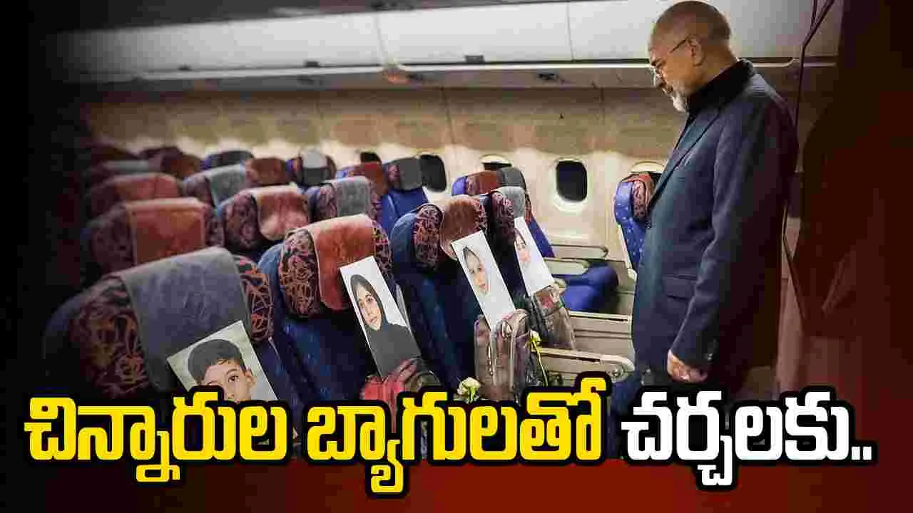 ఒక్కో సీటులో ఒక్కో చిన్నారికి సంబంధించిన ఫొటో, ఇతర వస్తువుల్ని ఉంచారు. విమానం పాకిస్థాన్లో ల్యాండ్ అయిన తర్వాత ఇరాన్ పార్లమెంట్ స్పీకర్ మహ్మద్ బాఘెర్ గాలిబఫ్ చిన్నారుల ఫొటోల దగ్గరకు వెళ్లారు. వాటిని చూస్తూ కంటతడి పెట్టుకున్నారు. ఇందుకు సంబంధించిన ఫొటోను తన ఎక్స్ ఖాతాలో షేర్ చేశారు. ఆదిత్య రాజ్ కౌల్ ఇందుకు సంబంధించిన వీడియో, ఫొటోలను తన ఎక్స్ ఖాతాలో షేర్ చేశారు. ఆ పోస్టుపై స్పందిస్తున్న నెటిజన్లు పిల్లల ప్రాణాలు బలి తీసుకున్న ఇజ్రాయెల్, అమెరికాపై ఆగ్రహం వ్యక్తం చేస్తున్నారు.