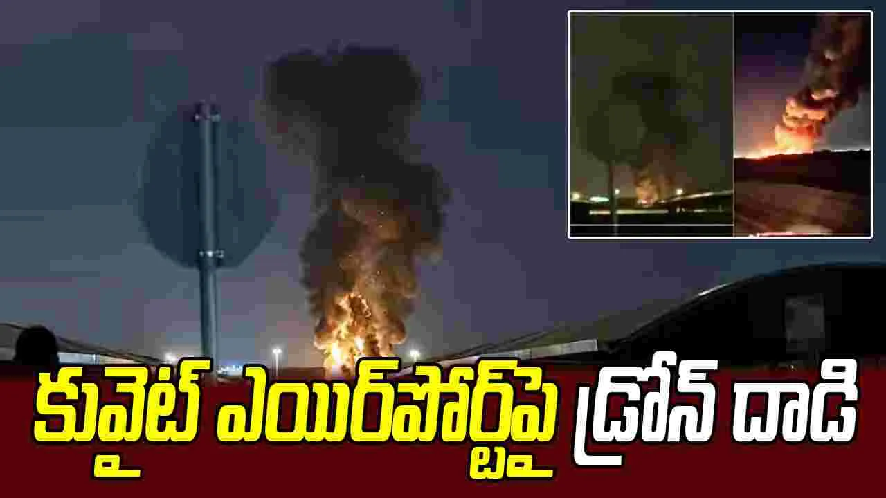 కువైట్ విమానాశ్రయంపై ఇరాన్ డ్రోన్ దాడి.. ఎగిసిపడుతున్న మంటలు