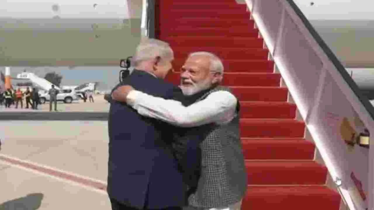 టెల్ అవీవ్, ఫిబ్రవరి 25: రెండు రోజుల అధికారిక పర్యటన కోసం ఇజ్రాయెల్ వెళ్లిన మోదీకి ఘనస్వాగతం లభించింది. టెల్ అవీవ్కు 20 కిలోమీటర్ల దూరంలో ఉన్న బెన్ గురియన్ విమానాశ్రయంలో దిగిన మోదీకి.. ఇజ్రాయెల్ ప్రధాని బెంజమిన్ నెతన్యాహు, ఆయన సతీమణి సారా నెతన్యాహు రెడ్ కార్పెట్ స్వాగతం పలికారు. మోదీని నెతన్యాహు ఆలింగనం చేసుకొని ఆప్యాయంగా పలకరించారు. ఈ సందర్భంగా తన సతీమణి సారా ధరించిన వస్త్రాలతో మోదీ కోటు జేబులో ఉన్న రుమాలు రంగు సరిపోలిందని నెతన్యాహు అనగా.. అది ‘కాషాయ’ రంగు అని మోదీ నవ్వుతూ చెప్పారు. గురువారం ఇద్దరు ప్రధానులు ద్వైపాక్షిక చర్చలు జరపనున్నారు. మోదీ పర్యటనకు ఇజ్రాయెల్ మీడియా అమిత ప్రాధాన్యం ఇచ్చింది. జెరూసలేం పోస్ట్ పత్రిక బుధవారం నాటి సంచిక మొదటి పేజీలో మోదీ అభివాదం చేస్తున్న ఫొటోను ముద్రించి..‘వెల్కమ్.. మోదీ’ అని హెడింగ్ పెట్టింది. హిందీలో ‘నమస్తే’ అని క్యాప్షన్ ఇచ్చింది.