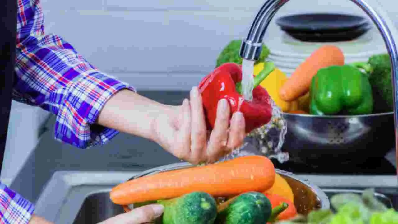 ముందుగా పండ్లు, కూరగాయలను నీటిలో 2–5 నిమిషాలు నానబెట్టండి. తర్వాత కుళాయి నీటితో బాగా రుద్దుతూ కడగండి. ఇలా చేయడం వల్ల దుమ్ము, బ్యాక్టీరియా, కొంతవరకు పురుగుమందులు తొలగిపోతాయి.
