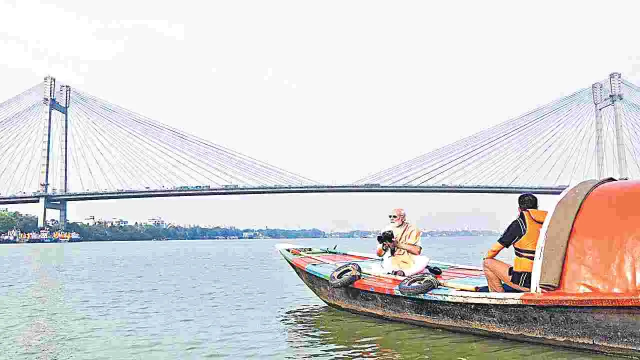 ఎన్నికల ప్రచారం కోలాహలం మధ్య.. మోదీ కోల్కతాలోని హుగ్లీ నదిలో పడవ ప్రయాణం చేస్తూ కొంతసేపు సరదాగా గడిపారు. నదిలో ప్రయాణిస్తున్న సమయంలో కెమెరా చేతబట్టి.. హౌరాబ్రిడ్జి, విద్యాసాగర సేతు దృశ్యాలను ఫొటోలు తీశారు. ‘‘గంగానదికి ఉపనది అయిన హుగ్లీ.. బెంగాల్ ఆత్మతో ప్రవహిస్తుందని, ఈ పవిత్రనదీ జలాలు గొప్ప నాగరికతకు ప్రతిబింబం’’ అని మోదీ ఎక్స్లో పోస్టు చేశారు. ఉదయాన్నే నదీ తీరానికి చేరుకున్న మోదీ అక్కడ పడవ నడిపేవారిని కలిసి వారి కష్టాలు అడిగి తెలుసుకున్నారు. ఉదయం నడకకు వచ్చిన వారితో గడపడం తనకు ఎంతో ఆనందాన్ని ఇచ్చిందని తెలిపారు.