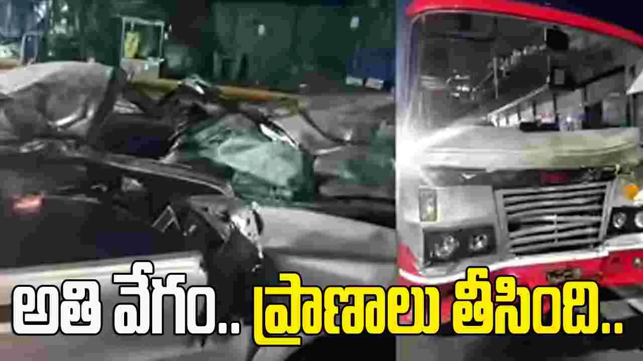 తీవ్ర విషాదం.. బస్సును ఢీకొన్న కారు.. ఐదుగురి మృతి
