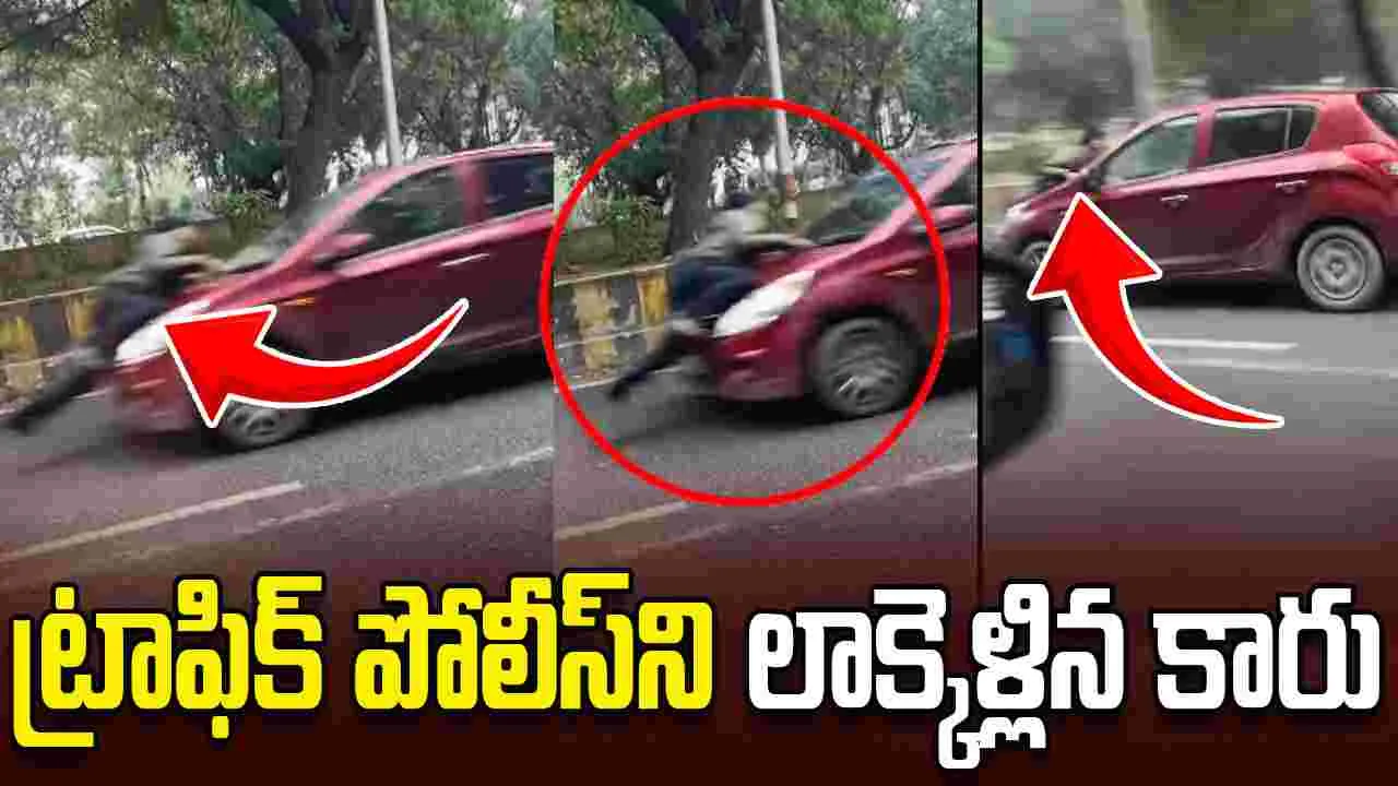 ట్రాఫిక్ పోలీస్ని కారు బానెట్పై ఈడ్చుకెళ్లాడు.. వీడియో వైరల్