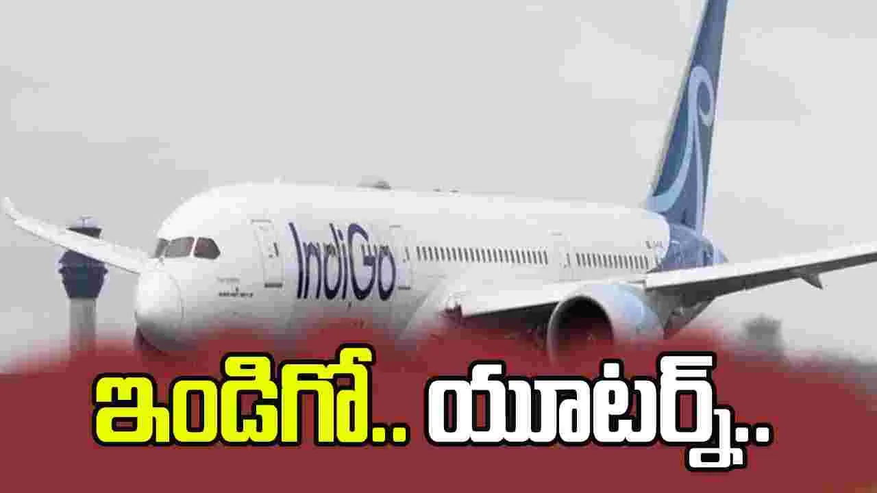 విమాన ప్రయాణికులకు దిగ్భ్రాంతి కలిగించే ఘటన సోమవారంనాడు చోటుచేసుకుంది. ఢిల్లీలోని ఇందిరాగాంధీ అంతర్జాతీయ విమానాశ్రయం నుంచి మాంచెస్టర్కు బయలుదేరిన ఇండిగో ఫ్లయిట్ 6E33 బోయింగ్ 787-9 డ్రీమ్లైనర్ అనూహ్యంగా గాలిలో ఉండగానే 'యూటర్న్' తీసుకుని వెనక్కి తిరిగొచ్చింది.