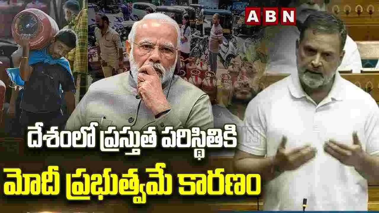 ఇరాన్, అమెరికా - ఇజ్రాయిల్ యుద్ధం నేపథ్యంలో గ్యాస్ కొరతతో భారతదేశం అల్లాడుతోందని లోక్సభలో ప్రతిపక్ష నేత రాహుల్ గాంధీ ఆవేదన వ్యక్తం చేశారు. దేశంలో ప్రస్తుత పరిస్థితికి మోదీ ప్రభుత్వమే కారణమని ఆయన విమర్శించారు.