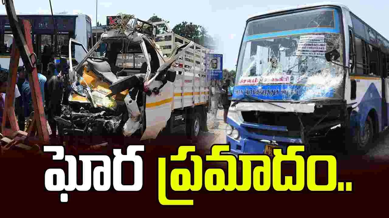 పోలీసులు తెలిపిన వివరాల మేరకు.. గురువారం ఉదయం ఓ ఆర్టీసీ బస్సు కోయంబత్తూరు నుంచి సేలం బయలుదేరింది. బస్సు ఉత్తమ శోలపురం దగ్గర హైవేపై వెళుతుండగా అదుపుతప్పింది. డివైడర్ను దాటుకుని అవతలి వైపు రోడ్డుపైకి దూసుకెళ్లింది. ఆ రోడ్డుపై వెళుతున్న ఓ బైక్తో పాటు టెంపోను ఢీకొట్టింది. బైక్, టెంపో నుజ్జునుజ్జయ్యాయి. బైకుపై ప్రయాణిస్తున్న ఓ మహిళతో పాటు ఆమె కూతురు అక్కడికక్కడే మరణించారు. ఇక.. టెంపోలో ప్రయాణిస్తున్న ఒకే కుటుంబానికి చెందిన ఐదుగురు ప్రాణాలు కోల్పోయారు. చనిపోయిన వారిలో 11 నెలల చంటిపాప కూడా ఉండటం విషాదకరం.