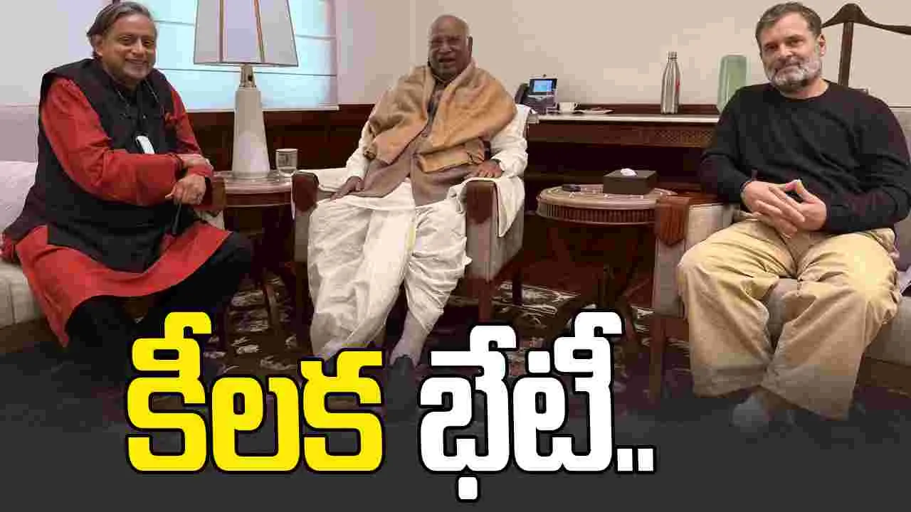 పార్లమెంట్ ప్రాంగణంలో గురువారం కీలక పరిణామం చోటు చేసుకుంది. కాంగ్రెస్ పార్టీ అగ్రనేతలు రాహుల్ గాంధీ, మల్లికార్జున ఖర్గేలతో.. ఆ పార్టీ ఎంపీ శశిథరూర్ సమావేశమయ్యారు. పార్టీ మారుతున్నట్లు ప్రచారం జరుగుతున్న వేళ.. వారితో శశిథరూర్ బేటీ కావడం ప్రాధాన్యం సంతరించుకుంది.