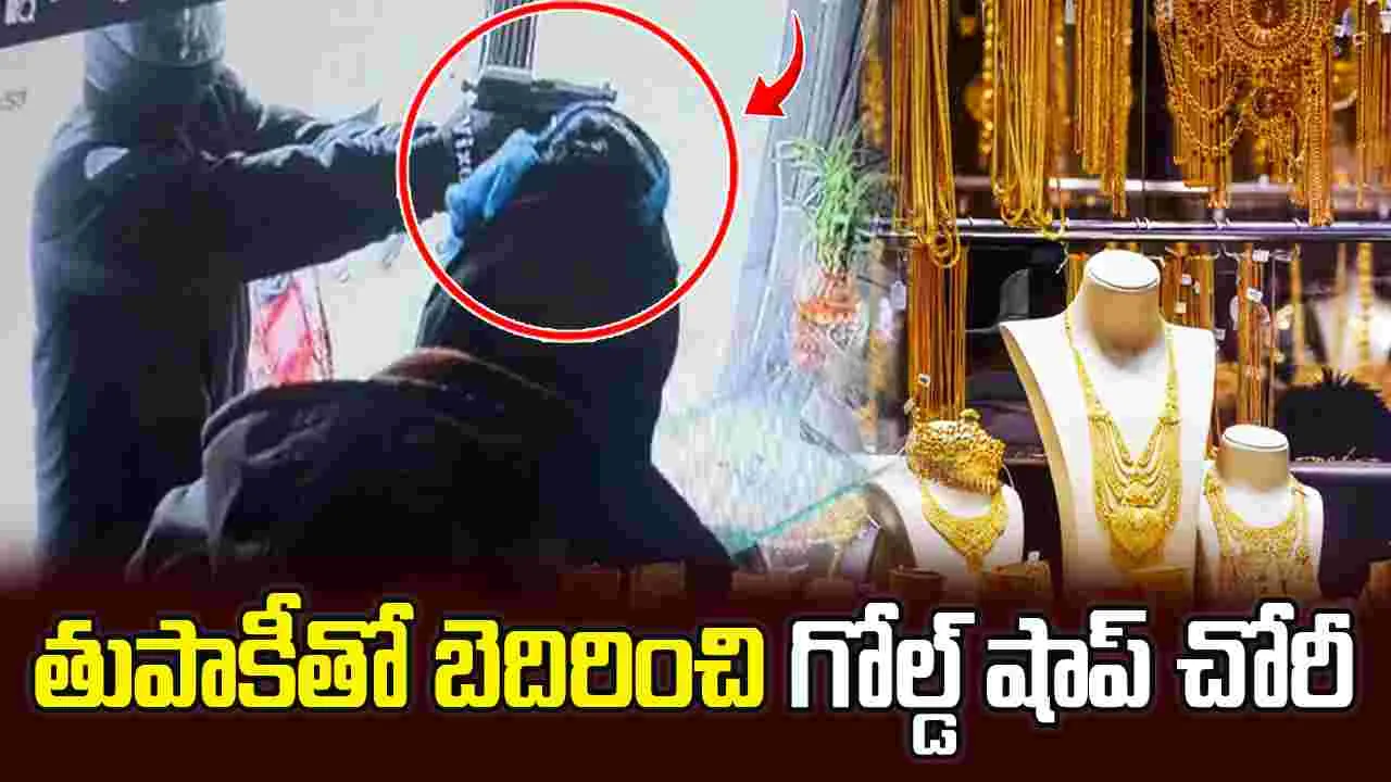 బైక్ పై బంగారం షాప్ దగ్గరకి వచ్చారు ఇద్దరు కేటుగాళ్లు. మంకీ క్యాప్, పైన హెల్మెట్లు తీయకుండానే షాప్ లోకి ప్రవేశించారు. ఉన్నపళంగా తుపాకీ తీసి షాప్ సిబ్బందిని బెదిరించారు.