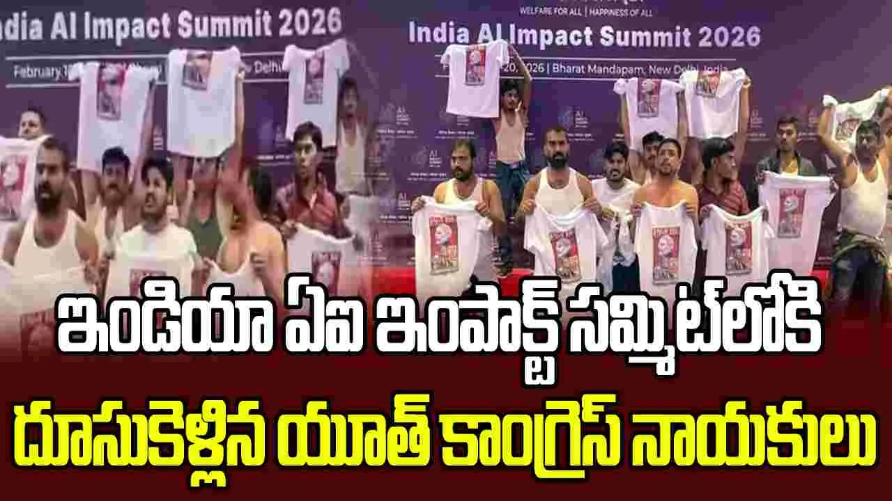 ఢిల్లీలోని భారత్ మండపం వేదికగా జరుగుతున్న ఇండియా ఏఐ ఇంపాక్ట్ సమ్మిట్లో శుక్రవారంనాడు అనూహ్య సంఘటన చోటుచేసుకుంది. పలువురు యువజన కాంగ్రెస్ కార్యకర్తలు చొక్కాలు విప్పి వీరంగం చేశారు.