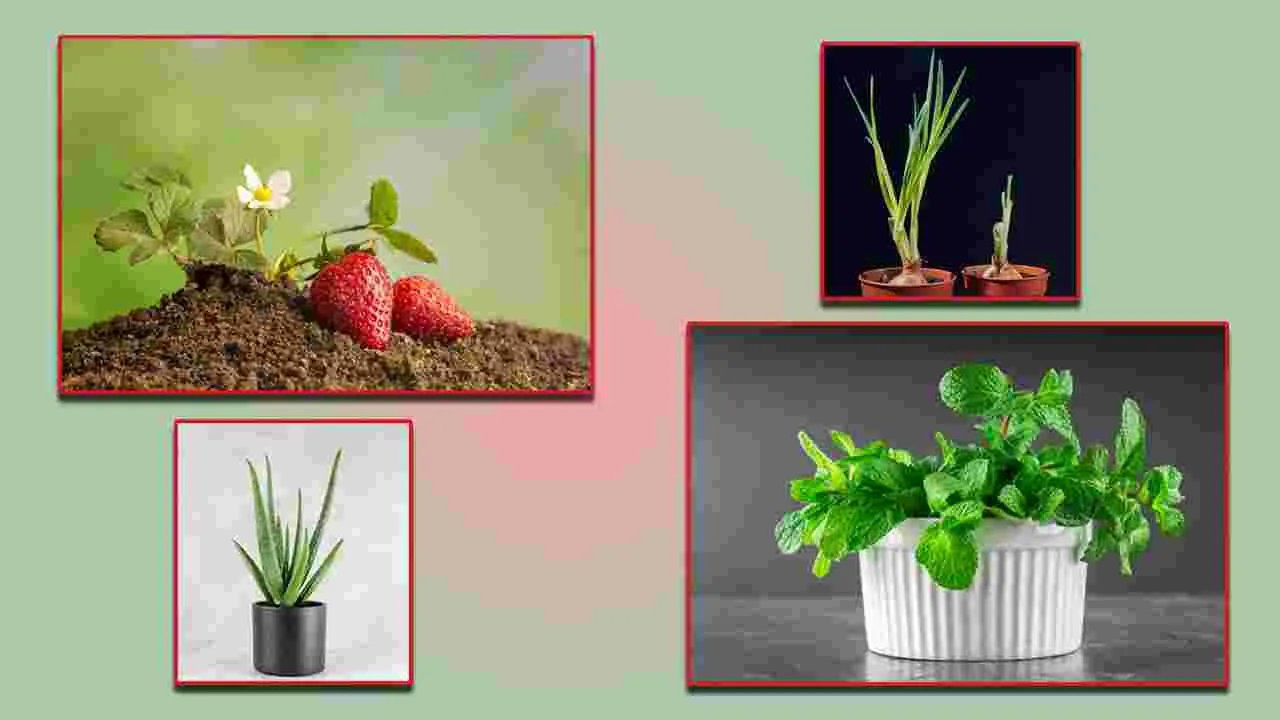 స్ట్రాబెర్రీ: ఈ పండ్ల మీద చిన్న సైజు రన్నర్లు ఉంటాయి. వీటిని జాగ్రత్తగా సేకరించి మట్టిలో నాటితే స్ట్రాబెర్రీ మొక్క పెరుగుతుంది. రోజంతా సూర్యరశ్మి సోకుతూ ఉంటే మొక్క ఏపుగా పెరుగుతుంది.