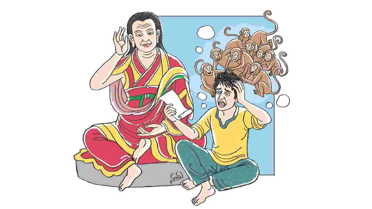 ఆయన మాటలు వినగానే ఆ యువకుడికి అన్ని చోట్లా కోతులే కనిపించసాగాయి. కళ్ళు మూసినా కోతులే, కళ్ళు తెరిచినా కోతులే. రాత్రంతా వాటిని మరచిపోవాలని ఎంతగానో ప్రయత్నించాడు. అతను ఎంత ఎక్కువగా ప్రయత్నిస్తే అంత ఎక్కువ స్పష్టంగా కోతులు కనిపించాయి. బాగా అలసిపోయి, ఇక చేసేది లేక... మిలారెపా దగ్గరకు వెళ్ళాడు. ‘‘అయ్యా! ఇదిగో మీ మంత్రం. మీరే తీసుకోండి. నాకు నిద్ర పట్టకుండా, ఆ మంత్రాన్ని చదవకుండా కోతుల ఆలోచనలే రాత్రంతా సతాయించాయి. నాకు ఏ శక్తులూ వద్దు. విశ్రాంతి కలిగే మార్గం చూపించండి’’ అని ప్రార్థించాడు. అప్పుడు మిలారెపా ‘‘ప్రశాంతతను మించిన శక్తి లేదు. మనశ్శాంతే గొప్ప శక్తి. ధ్యానం ద్వారా దాన్ని సాధించవచ్చు’’ అని ఆ యువకుడికి బోధించాడు. అందుకు అవసరమైన పద్ధతులను బోధించి, ఆ యువకుణ్ణి ధ్యాన మార్గంలో ప్రవేశపెట్టాడు.