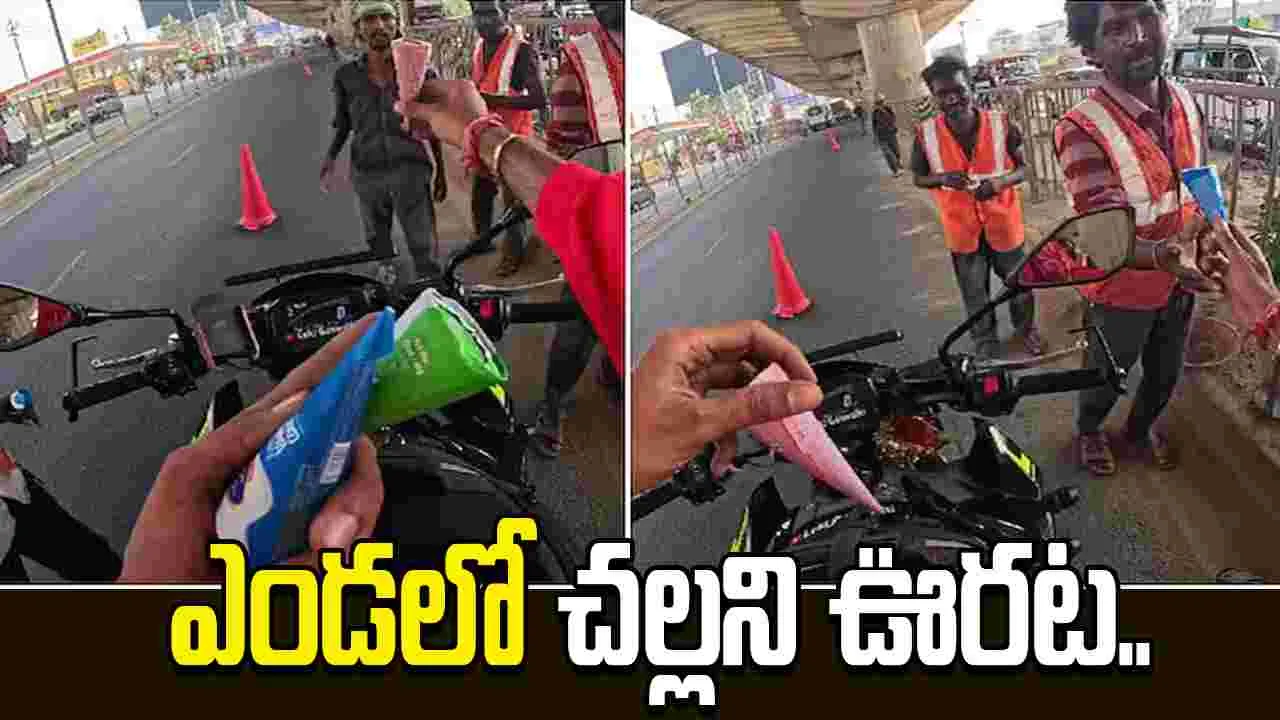 ఇంటర్నెట్ డెస్క్: బెంగళూరులో ఎండలు దంచికొడుతున్నాయి. ఇటువంటి పరిస్థితుల్లో, రోడ్డు పక్కన కష్టపడే శ్రామికుల దాహార్తిని తీరుస్తూ.. ఒక బైకర్ చేసిన చిన్న ప్రయత్నం ఇప్పుడు సోషల్ మీడియాలో నెటిజన్ల మనసు గెలుచుకుంది. ఎండలో చెమటలు చిందుస్తూ రోడ్లపై పనిచేసే కూలీల కష్టాన్ని చూసి ఒక బైకర్ చలించిపోయాడు. కేవలం సానుభూతి చూపడమే కాకుండా, తన వంతుగా వారికి కాస్త ఉపశమనం కలిగించాలని నిర్ణయించుకున్నాడు. కూలీలకు చల్లని ఐస్క్రీంలను పంచిపెట్టాడు.