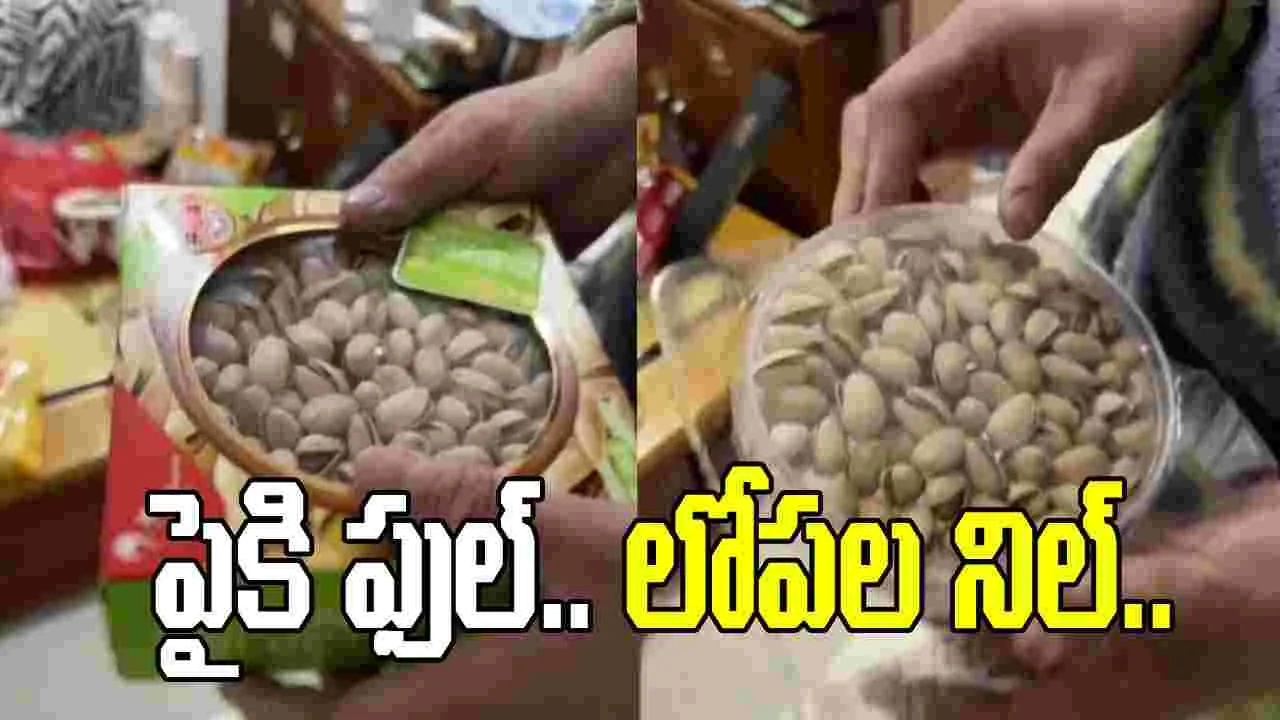 పిస్తా పప్పును ఎంతో కలర్ఫుల్గా ప్యాక్ చేశారు. ఈ ప్యాకింగ్ చూస్తే.. వెంటనే కొనేయాలి అనిపించేలా సెట్ చేశారు. ఇంతవరకూ అంతా బాగానే ఉంది కానీ.. దీని మాటున పెద్ద మోసం బయటపడింది. ప్యాకింగ్ ఓపెన్ చేయగానే..