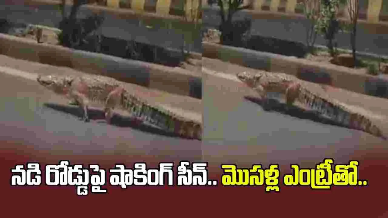 జన సంచార ప్రాంతాల్లో అప్పుడప్పుడూ పులులు, సింహాలు, ఏనుగులు సంచరించడం సర్వసాధారణం. కొన్నిసార్లు సంచరించడమే కాకుండా దాడులు చేస్తూ అందరినీ భయబ్రాంతులకు గురి చేస్తుంటాయి. మరికొన్నిసార్లు కామ్గా ఉంటూ అందరికీ షాక్ ఇస్తుంటాయి. ఇలాంటి సంఘటనలకు సంబంధించిన వీడియోలు సోషల్ మీడియాలో వైరల్ అవుతుంటాయి. తాజాగా, ఇలాంటి వీడియో ఒకటి నెట్టింట చక్కర్లు కొడుతోంది. మండుటెంలో రెండు మొసళ్లు రోడ్డుపై కనిపించాయి. తాపీగా పాకుతూ వెళ్లడాన్ని చూసి అంతా షాక్ అయ్యారు. చివరకు ఏమైందంటే.