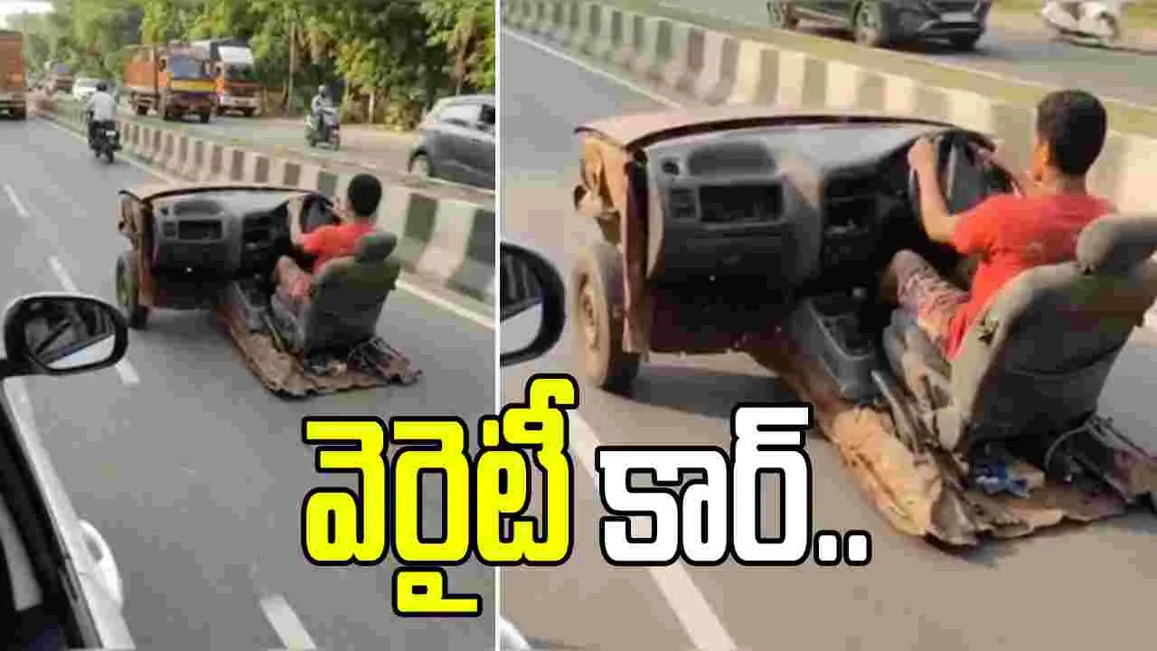 @Mr_arbaz_77 అనే ఎక్స్ యూజర్ ఈ వీడియోను సోషల్ మీడియాలో షేర్ చేశారు. వైరల్ అవుతున్న ఆ వీడియో ప్రకారం.. వాహనాలు తిరుగుతున్న బిజీ రోడ్డుపై ఒక వ్యక్తి విచిత్రమైన కారుపై ప్రయాణిస్తున్నాడు. ఆ కారుకు ఇంజిన్, రెండు చక్రాలు, స్టీరింగ్ వీల్, డ్రైవర్ సీటు మాత్రమే ఉన్నాయి. ఒక వ్యక్తి డ్రైవర్ సీటుపై హాయిగా కూర్చుని వాహనాన్ని అధిక వేగంతో నడుపుతున్నాడు. వెనుక చక్రాలు లేకపోవడంతో డ్రైవర్ సీటు రోడ్డు మీద రాసుకుంటూ వెళ్తోంది. ఇది చాలా ప్రమాదకరం అనే సంగతి తెలిసిందే (Bizarre car on road).