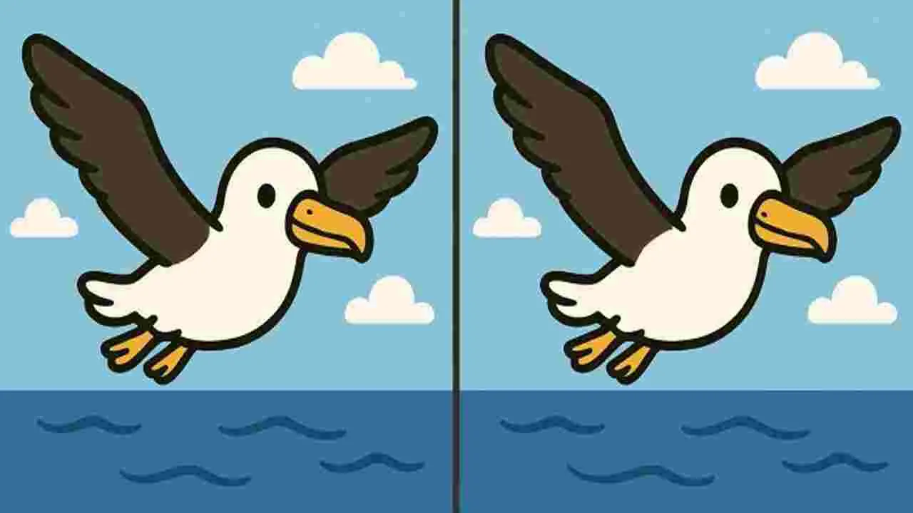 వైరల్ అవుతున్న ఆ ఫొటోలో ఒక పక్షి సముద్రంపై ఎగురుతోంది. పక్క పక్కనే ఉన్న రెండు ఫొటోల్లోనూ అదే దృశ్యం ఉంది. అయితే ఆ రెండు ఫొటోల్లో మూడు చిన్న తేడాలున్నాయి. జాగ్రత్తగా గమనిస్తే ఆ రెండు ఫొటోల మధ్యనున్న తేడాలు కనబడతాయి. 30 సెకెన్ల వ్యవధిలో ఆ తేడాలను కనిపెడితే మీ బ్రెయిన్ స్పీడ్గా పని చేస్తున్నట్టు లెక్క. మీరు కనిపెట్టగలిగారా? అయితే కంగ్రాట్స్.. కనిపెట్టలేకపోయారా? అయితే కింది ఫొటో చూడండి.. ఆ రెండు ఫొటోల మధ్యనున్న తేడాలేంటో తెలుస్తుంది.