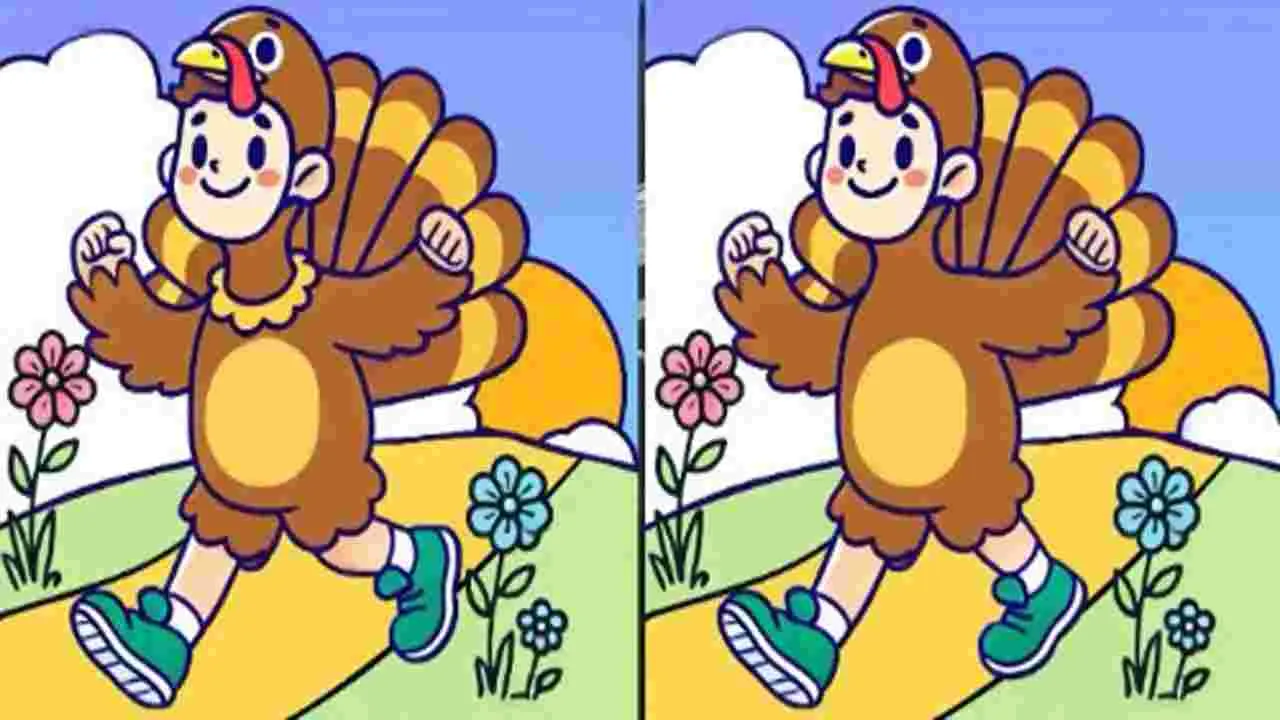 వైరల్ అవుతున్న ఆ ఫొటోలో ఒక కుర్రాడు పార్కులో నడుచుకుంటూ వెళ్తున్నాడు. టర్కీ కోడిలా వేషం వేసుకుని నడుస్తున్నాడు. పక్క పక్కనే ఉన్న రెండు ఫొటోల్లోనూ అదే దృశ్యం ఉంది. అయితే ఆ రెండు ఫొటోల్లో మూడు చిన్న తేడాలున్నాయి. జాగ్రత్తగా గమనిస్తే ఆ రెండు ఫొటోల మధ్యనున్న తేడాలు కనబడతాయి. 15 సెకెన్ల వ్యవధిలో ఆ తేడాలను కనిపెడితే మీ బ్రెయిన్ స్పీడ్గా పని చేస్తున్నట్టు లెక్క. మీరు కనిపెట్టగలిగారా? అయితే కంగ్రాట్స్.. కనిపెట్టలేకపోయారా? అయితే కింది ఫొటో చూడండి.. ఆ రెండు ఫొటోల మధ్యనున్న తేడాలేంటో తెలుస్తుంది.
