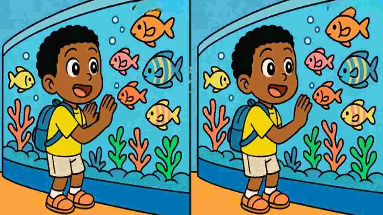 వైరల్ అవుతున్న ఆ ఫొటోలో ఓ బాలుడు అక్వేరియంలోని చేపలను గమనిస్తున్నాడు. పక్క పక్కనే ఉన్న రెండో ఫొటోల్లోనూ అదే దృశ్యం కనబడుతోంది. చూడడానికి రెండు ఫొటోలూ ఒకేలా ఉన్నాయి. అయితే ఆ రెండు ఫొటోల మధ్య మూడు చిన్న చిన్న తేడాలున్నాయి. జాగ్రత్తగా గమనిస్తేనే ఆ రెండు ఫొటోల మధ్యనున్న తేడాలను కనిపెట్టగలరు. 45 సెకెన్ల వ్యవధిలో ఆ తేడాలను కనిపెడితే మీ బ్రెయిన్ స్పీడ్గా పని చేస్తున్నట్టు లెక్క. మీరు కనిపెట్టగలిగారా? అయితే కంగ్రాట్స్.. కనిపెట్టలేకపోయారా? అయితే కింది ఫొటో చూడండి.. ఆ మూడు తేడాలేంటో మీకు తెలుస్తుంది.