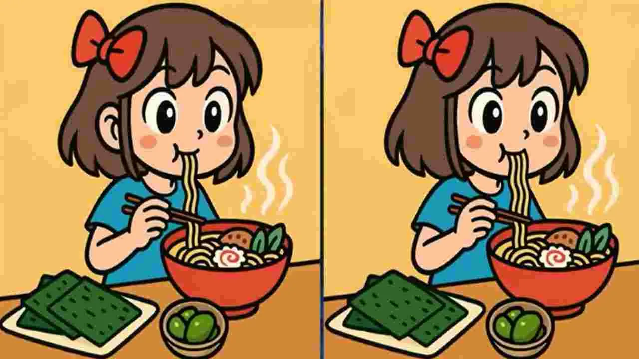 వైరల్ అవుతున్న ఆ ఫొటోలో ఓ బాలిక డైనింగ్ టేబుల్ ముందు కూర్చుని నూడిల్స్ తింటోంది. పక్క పక్కనే ఉన్న రెండు ఫొటోల్లోనూ అదే దృశ్యం ఉంది. అయితే ఆ రెండు ఫొటోల్లో మూడు చిన్న తేడాలున్నాయి. జాగ్రత్తగా గమనిస్తే ఆ రెండు ఫొటోల మధ్యనున్న తేడాలు కనబడతాయి. 40 సెకెన్ల వ్యవధిలో ఆ తేడాలను కనిపెడితే మీ బ్రెయిన్ స్పీడ్గా పని చేస్తున్నట్టు లెక్క. మీరు కనిపెట్టగలిగారా? అయితే కంగ్రాట్స్.. కనిపెట్టలేకపోయారా? అయితే కింది ఫొటో చూడండి.. ఆ రెండు ఫొటోల మధ్యనున్న తేడాలేంటో తెలుస్తుంది.
