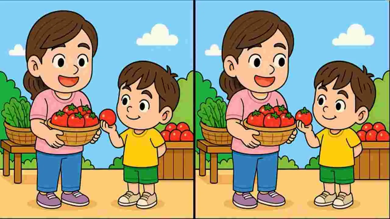 వైరల్ అవుతున్న ఆ ఫొటోలో ఒక తల్లి, కొడుకు కలిసి టమాటాలు సేకరిస్తున్నారు. పక్క పక్కనే ఉన్న రెండు ఫొటోల్లోనూ అదే దృశ్యం ఉంది. అయితే ఆ రెండు ఫొటోల్లో మూడు చిన్న తేడాలున్నాయి. జాగ్రత్తగా గమనిస్తే ఆ రెండు ఫొటోల మధ్యనున్న తేడాలు కనబడతాయి. 45 సెకెన్ల వ్యవధిలో ఆ తేడాలను కనిపెడితే మీ బ్రెయిన్ స్పీడ్గా పని చేస్తున్నట్టు లెక్క. మీరు కనిపెట్టగలిగారా? అయితే కంగ్రాట్స్.. కనిపెట్టలేకపోయారా? అయితే కింది ఫొటో చూడండి.. తేడాలేంటో తెలుస్తుంది.