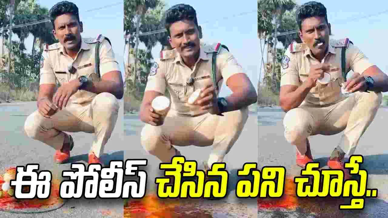 రోడ్డుపై నిమ్మకాయలు, టెంకాయ.. ఈ పోలీస్ ఏం చేశారో మీరే చూడండి..