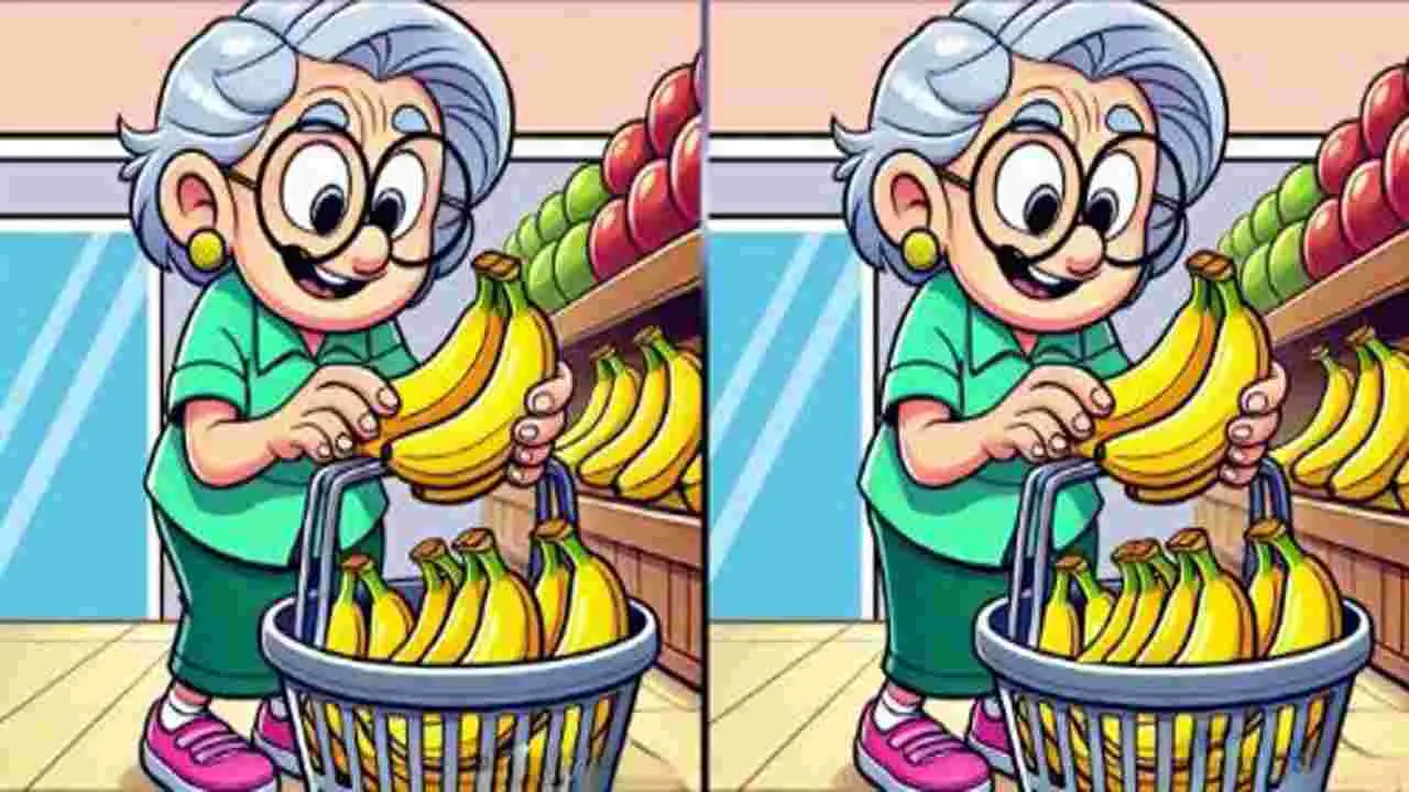 వైరల్ అవుతున్న ఆ ఫొటోలో ఒక వృద్ధురాలు సూపర్ మార్కెట్లో అరటి పళ్లు కొంటోంది. పక్క పక్కనే ఉన్న రెండు ఫొటోల్లోనూ అదే దృశ్యం కనబడుతోంది. చూడడానికి రెండు ఫొటోలూ ఒకేలా ఉన్నాయి. అయితే ఆ రెండు ఫొటోల మధ్య మూడు చిన్న చిన్న తేడాలున్నాయి. జాగ్రత్తగా గమనిస్తేనే ఆ రెండు ఫొటోల మధ్యనున్న తేడాలను కనిపెట్టగలరు. 27 సెకెన్ల వ్యవధిలో ఆ తేడాలను కనిపెడితే మీ బ్రెయిన్ స్పీడ్గా పని చేస్తున్నట్టు లెక్క. మీరు కనిపెట్టగలిగారా? అయితే కంగ్రాట్స్.. కనిపెట్టలేకపోయారా? అయితే కింది ఫొటో చూడండి.. ఆ మూడు తేడాలేంటో మీకు తెలుస్తుంది.