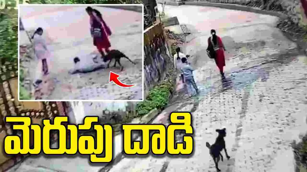 రోడ్డుపై నడుచుకుంటూ వెళుతున్న పిల్లాడిపై వీధి కుక్క దాడి..
